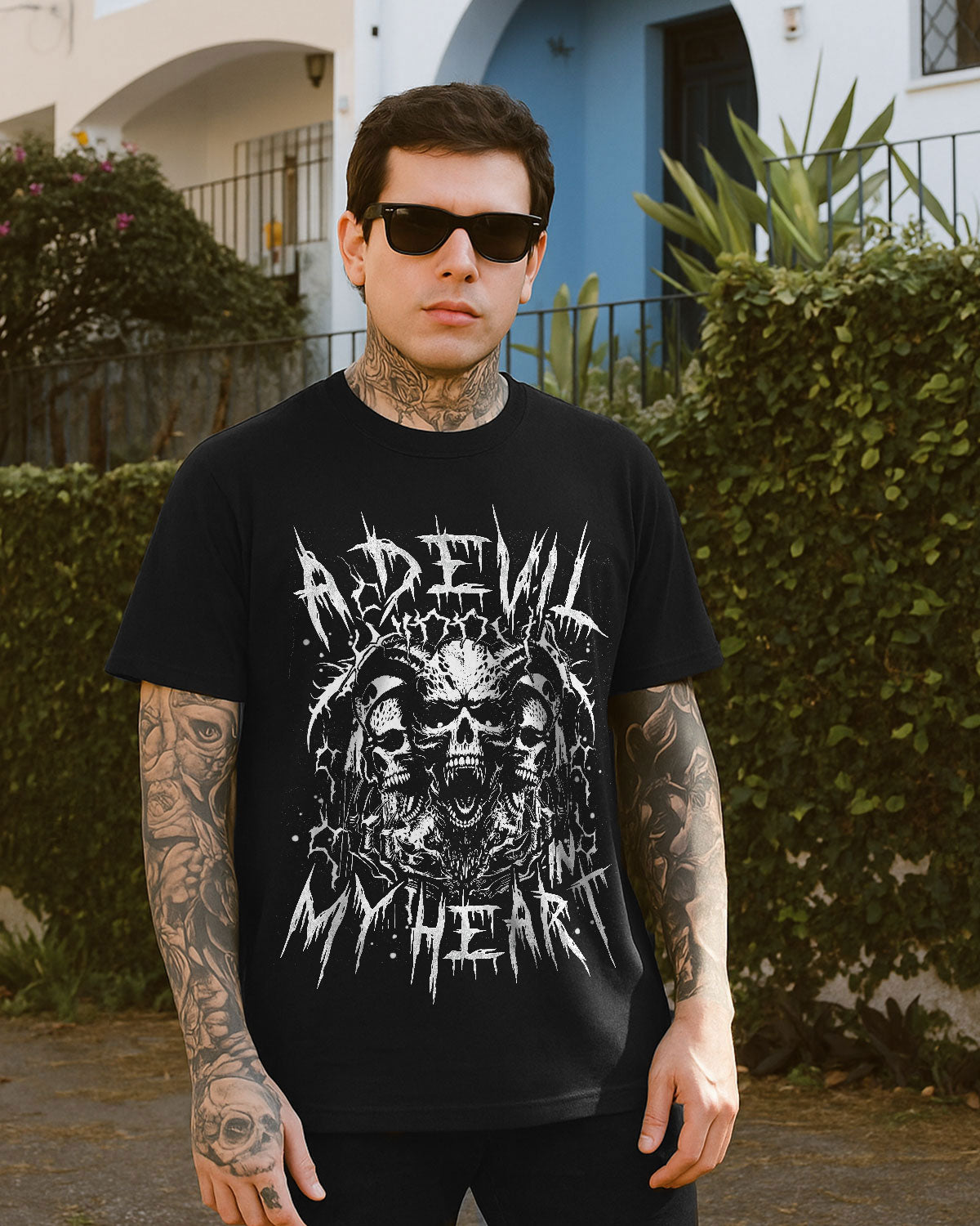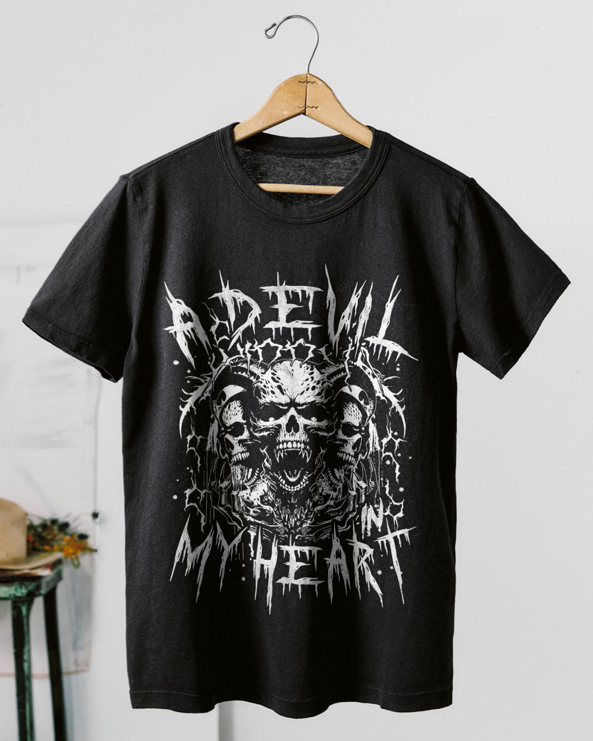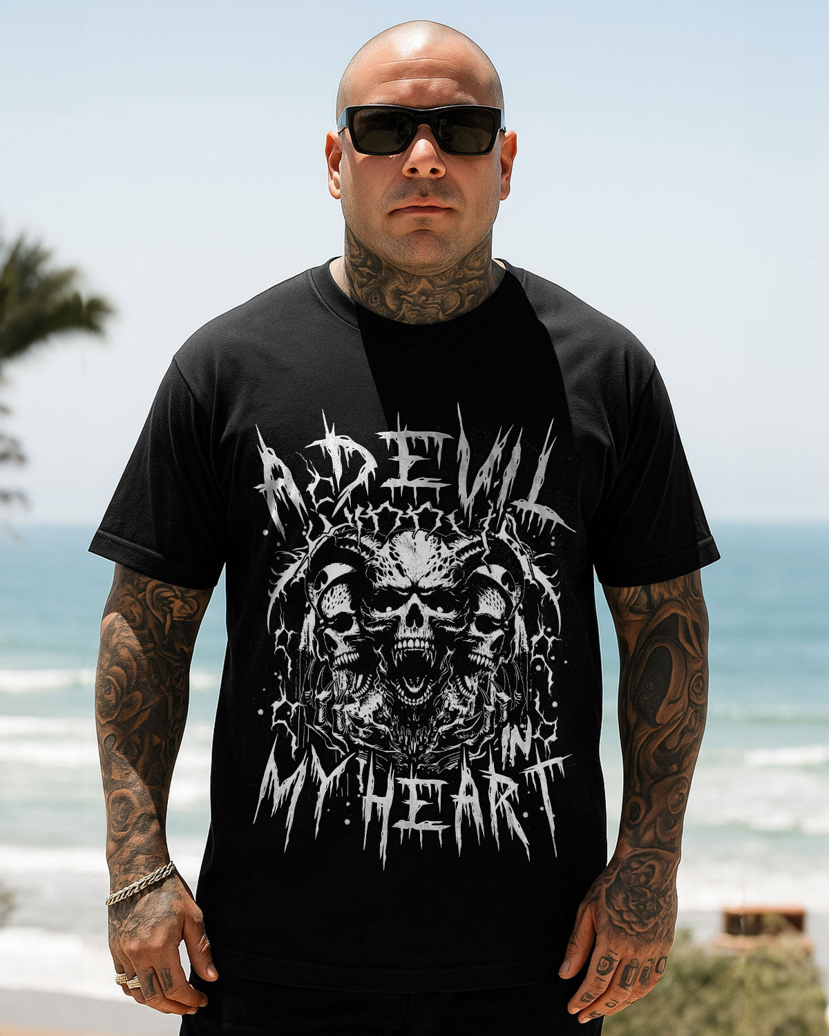 This intense design features a cluster of skulls radiating with dark emotion — a reflection of the fire that lives quietly within. It’s not about being evil, but embracing the shadow side that fuels passion, power, and unapologetic truth. The devil in the heart isn’t destruction — it’s the drive, the edge, the fearless part of you that never backs down. Beautifully dangerous, silently bold. ☠️💔🖤