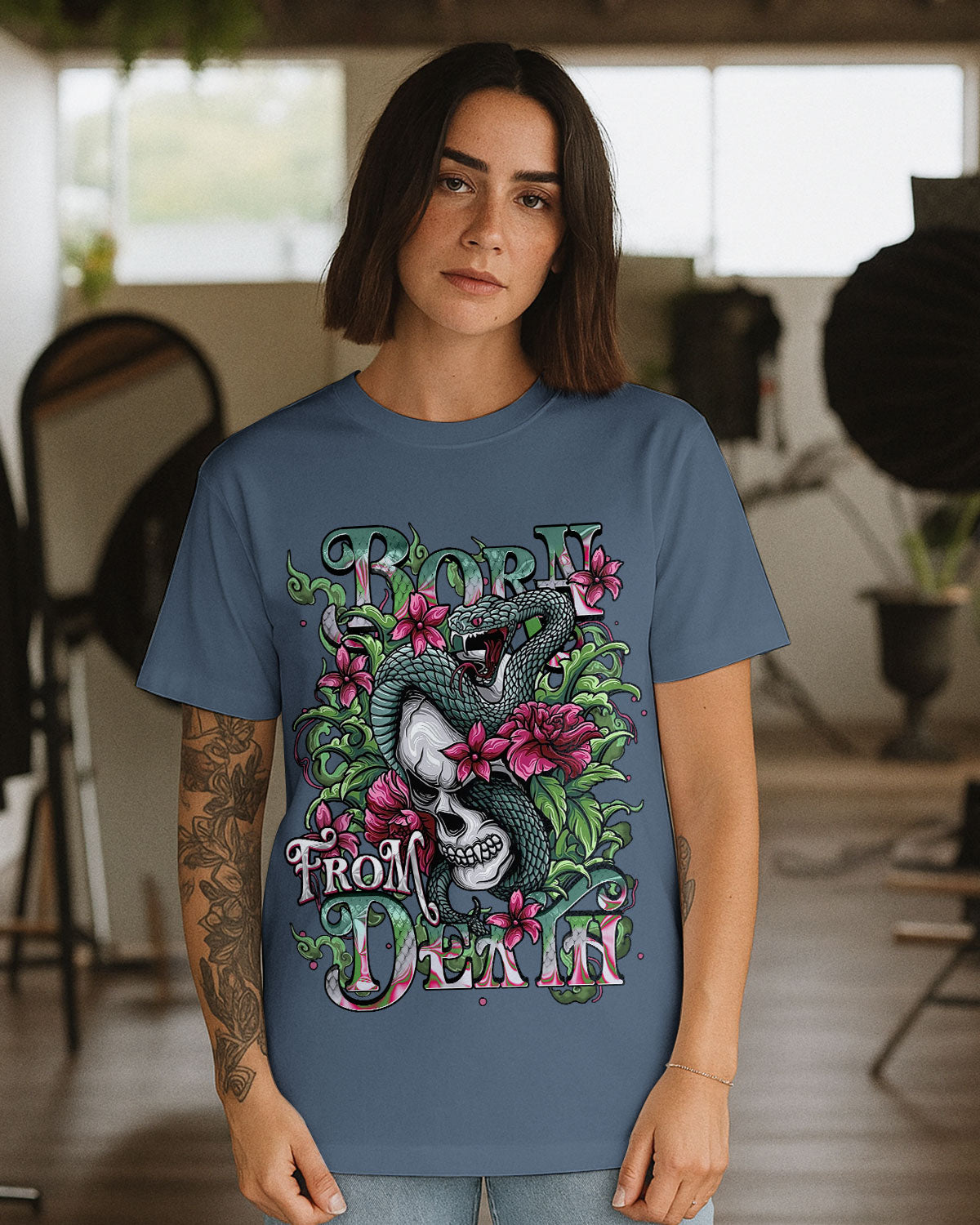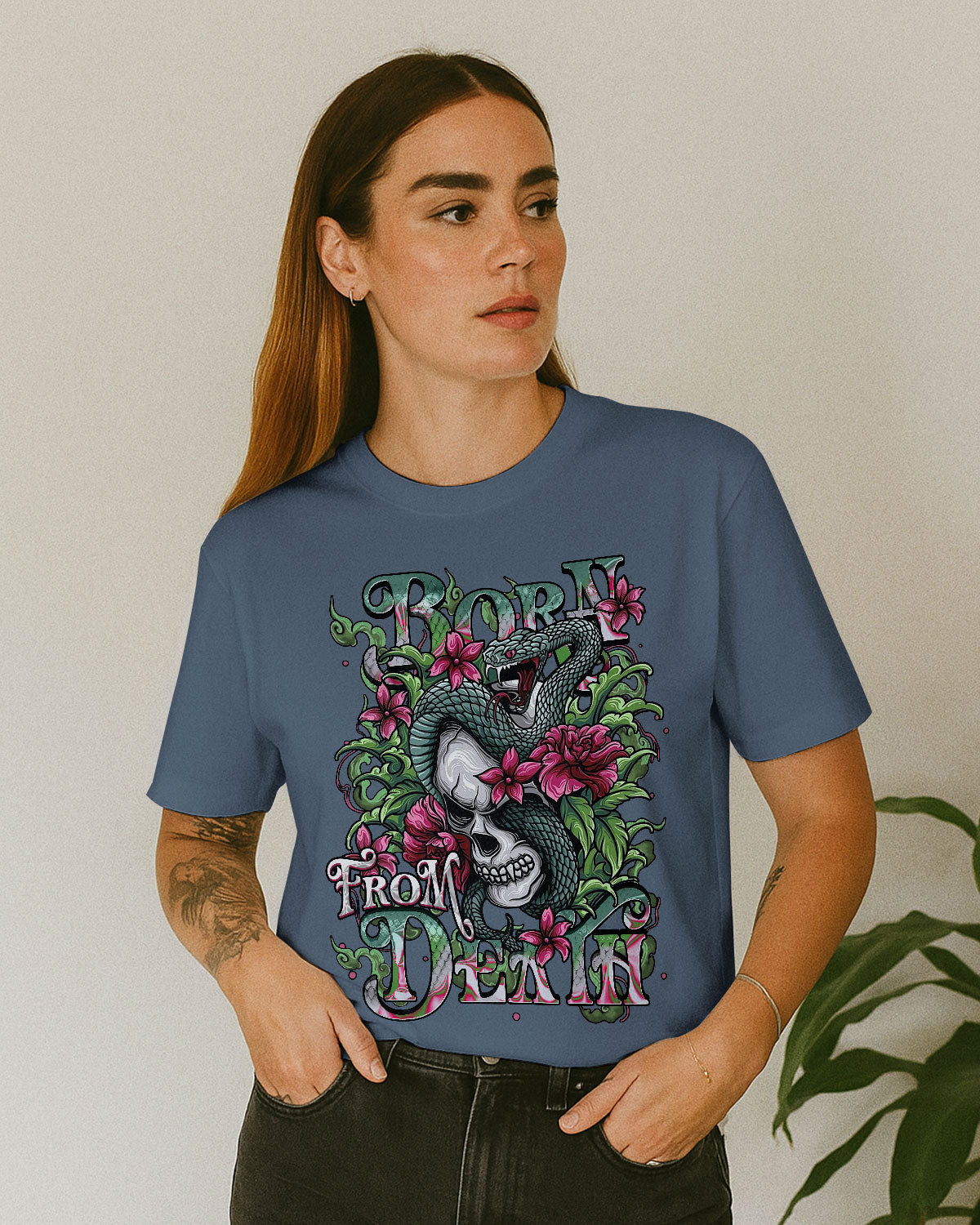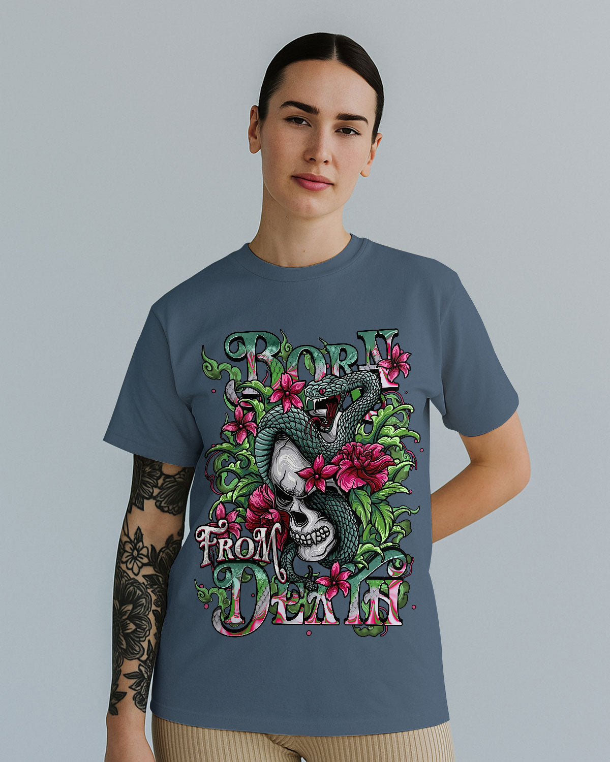 We work with premium American cotton garments — built tough, made to last. Every design is born, crafted, and printed right here in the USA. We keep it local, we keep it real — pushing for quality over quantity, meaning over mass production. Our process isn’t just about making clothes; it’s about making a statement.