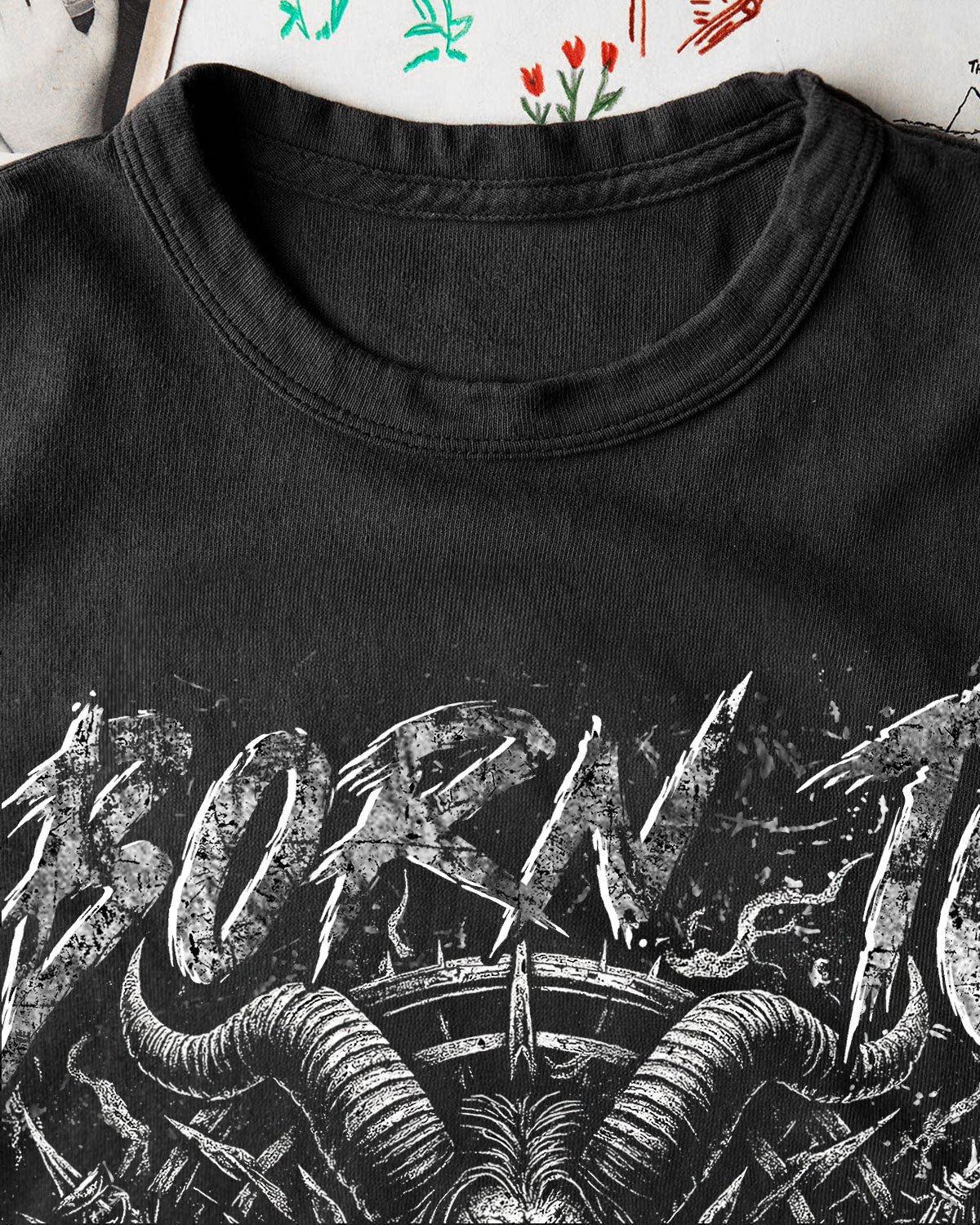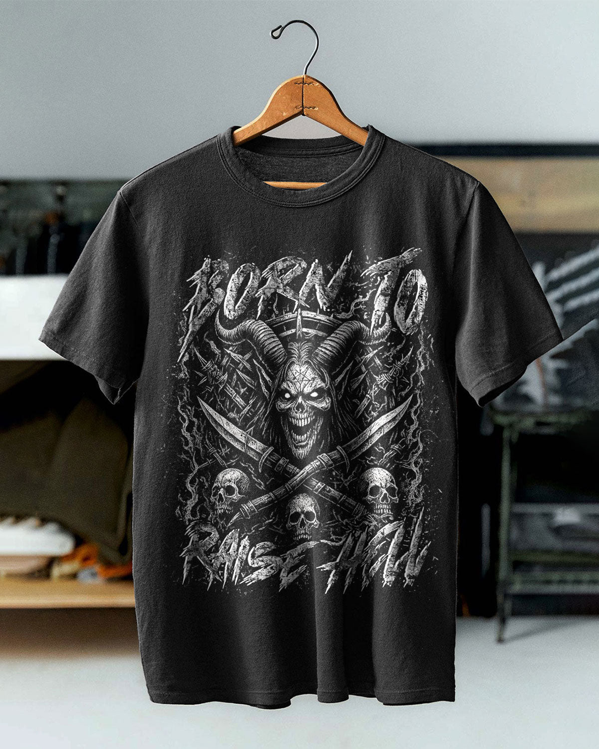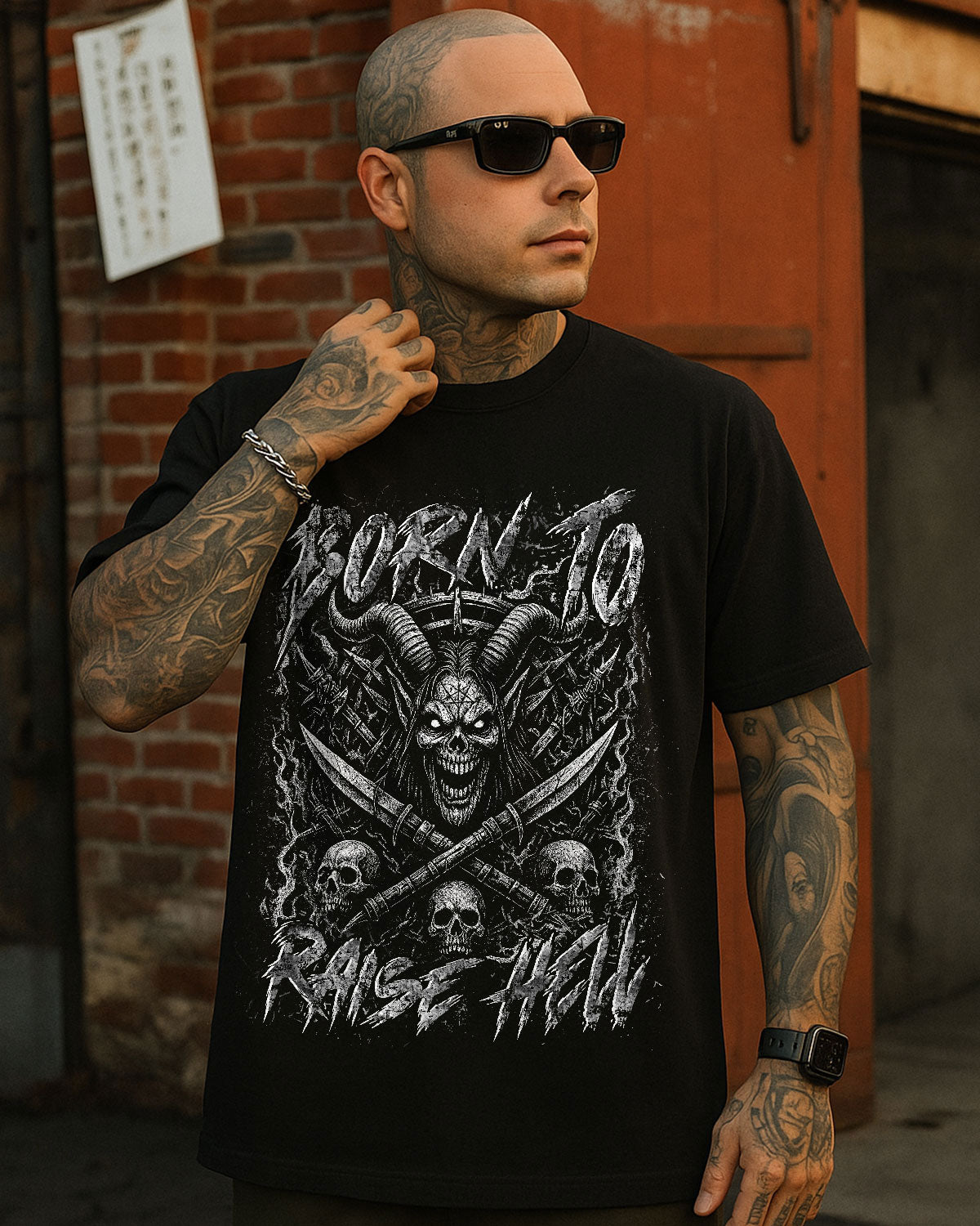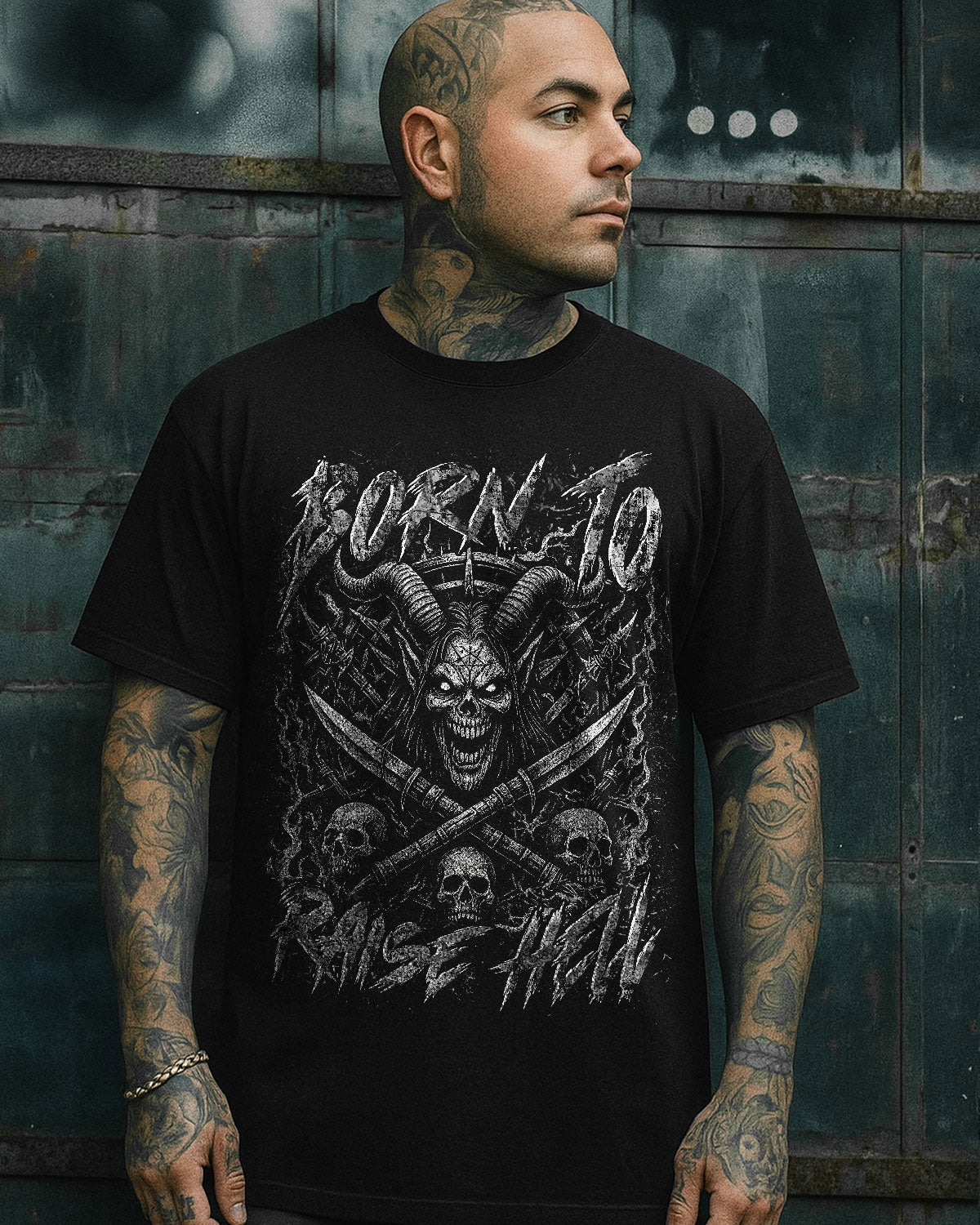 This intense gothic design features a fearsome demon skull with two sharp swords crossed in front, surrounded by smaller skulls, flames, and raging thunder. It’s a powerful visual of chaos, rebellion, and unshaken will. The quote isn’t just attitude — it’s a declaration of purpose, made for those born to break rules, stir the fire, and own every dark moment.