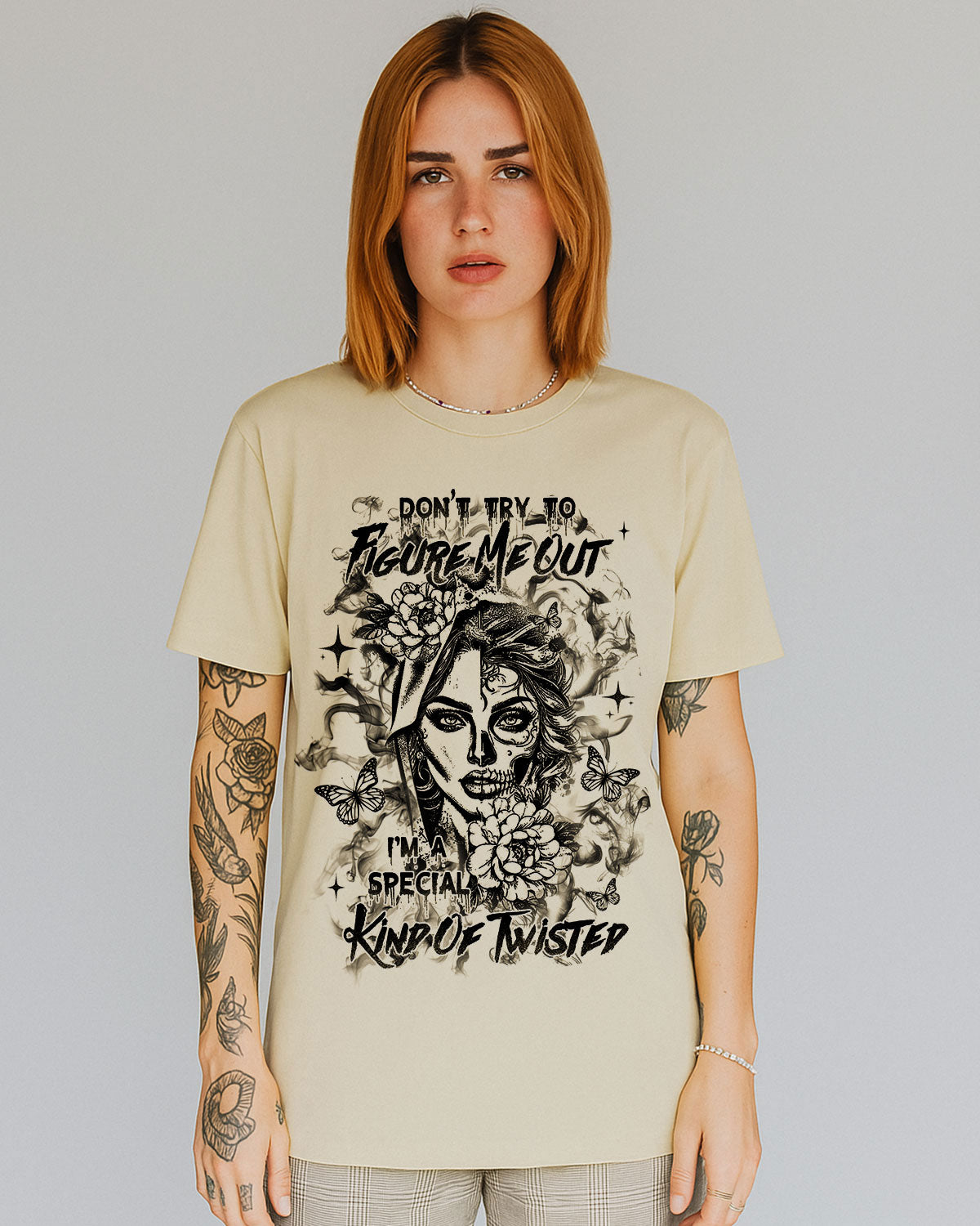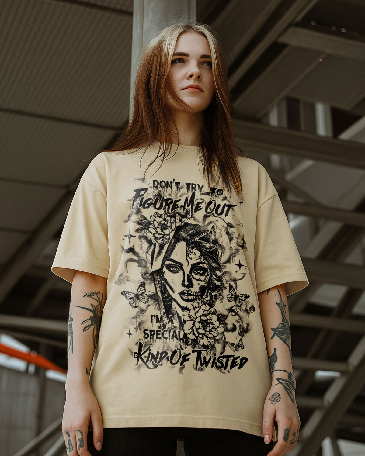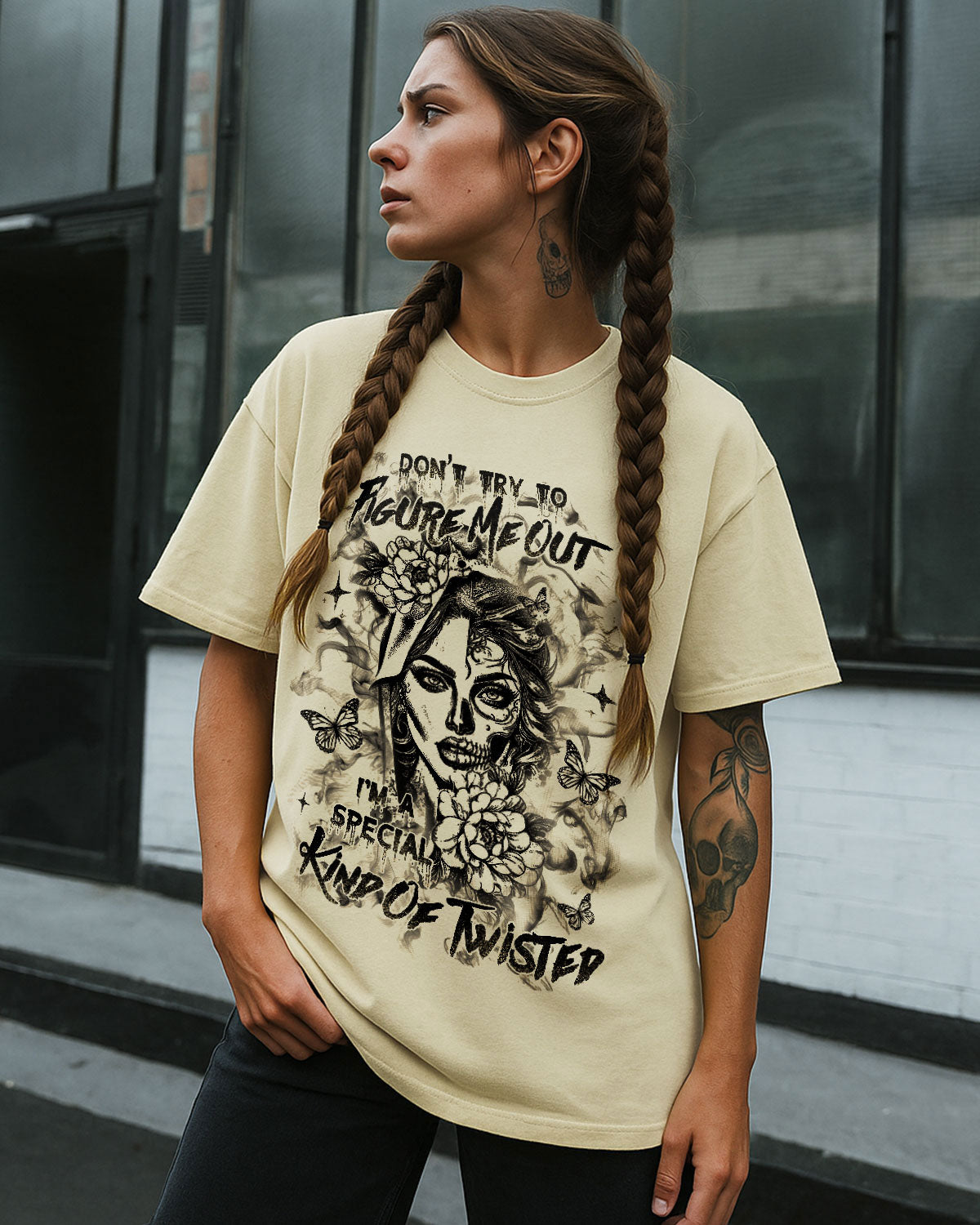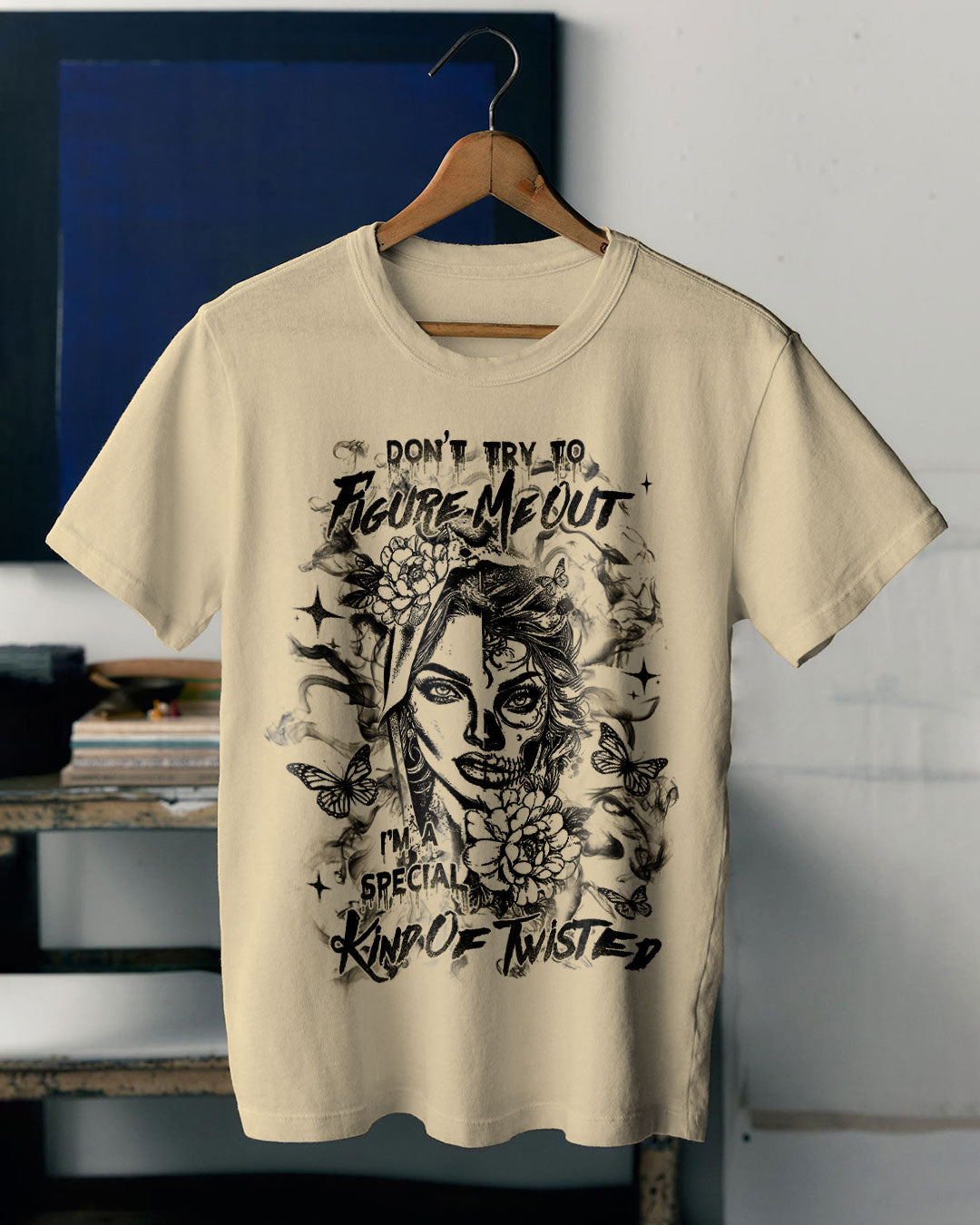 💀 I'm A Special Kind Of Twisted 🌹🦋 This mesmerizing design features a stunning lady with half her face transformed into a fierce skull, wrapped in mystical smoke, blooming flowers, and fluttering butterflies. It’s a powerful expression of wild beauty and unapologetic complexity — a...