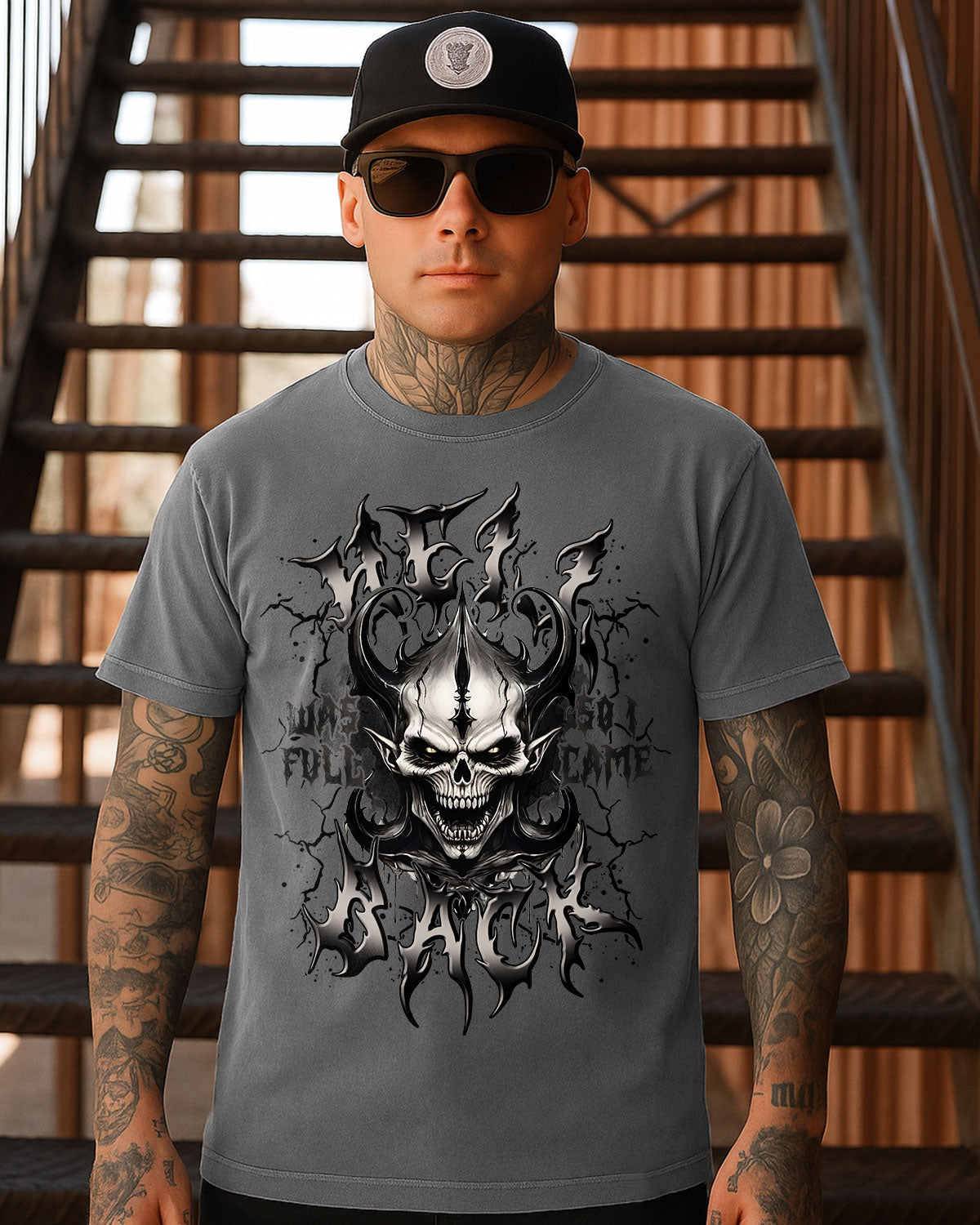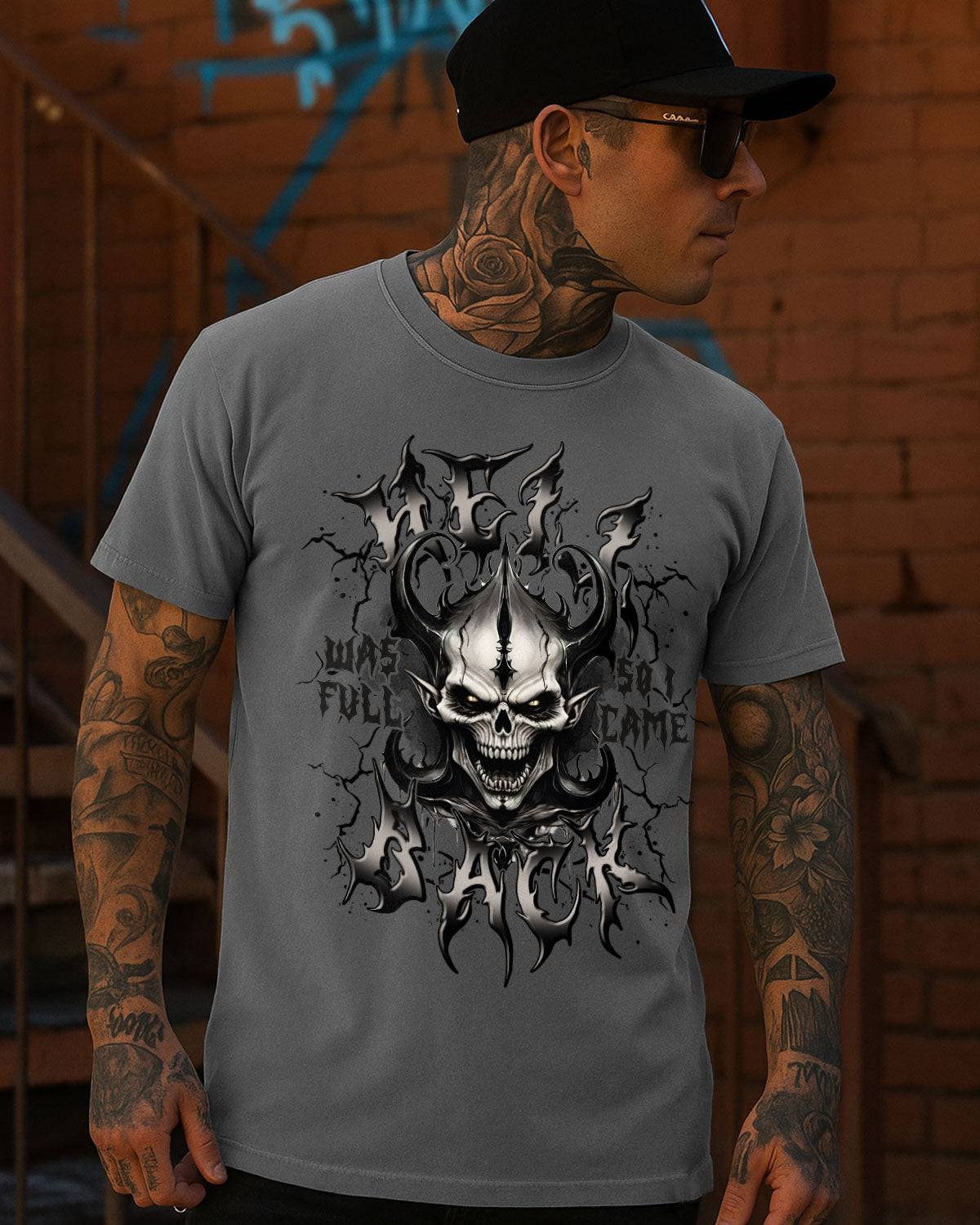 😈 Hell Was Full So I Came Back 💀🔥 When the underworld couldn’t handle the heat, the real trouble returned—louder, fiercer, and ready to raise hell. Our bold skull demon design brings a chilling edge to your look, perfect for those who own their darkness...
