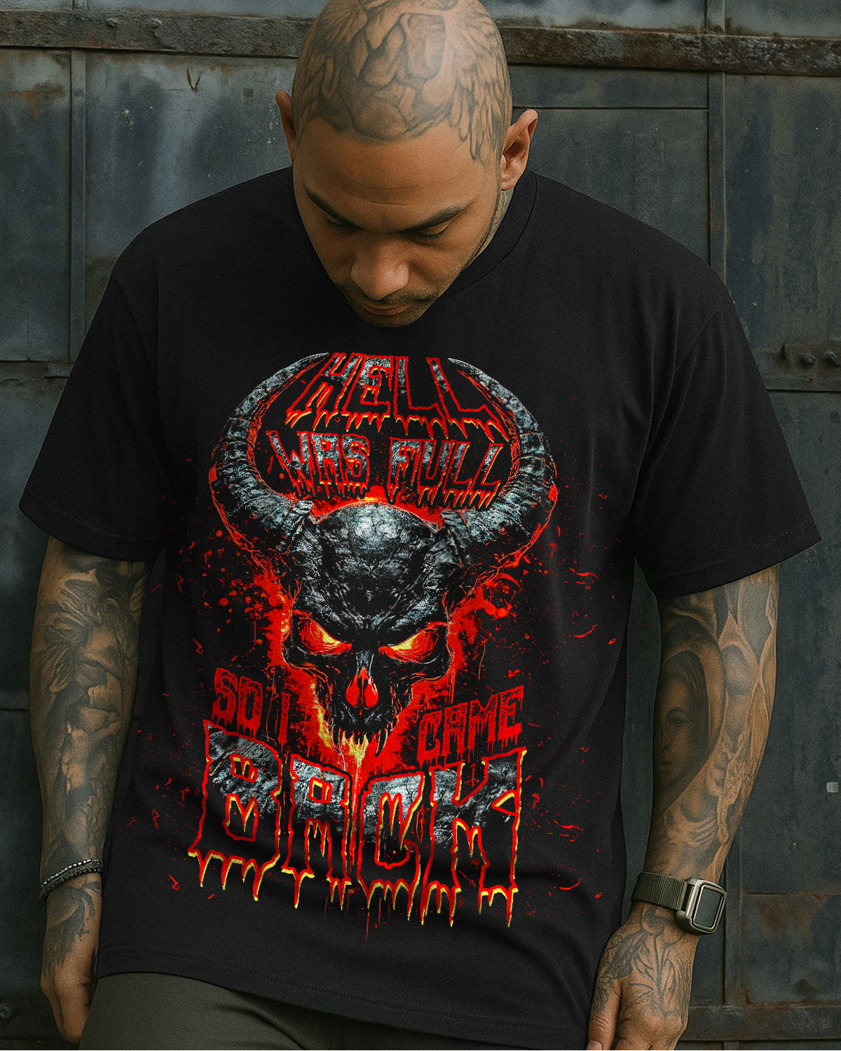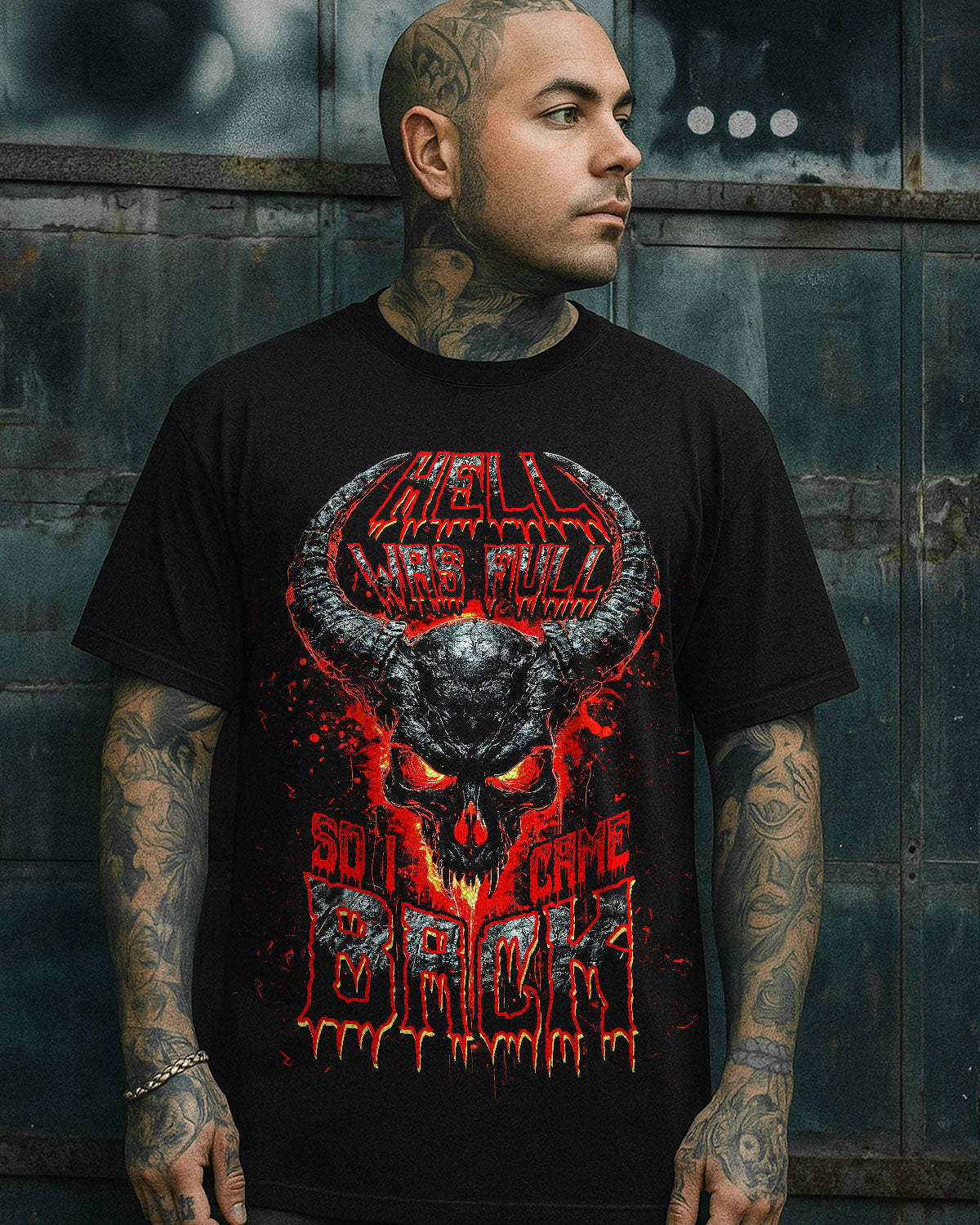😈 Hell Was Full So I Came Back 💀🔥⚡ When the underworld couldn’t handle your energy, you rose up hotter, louder, and more powerful than ever. Our fiery skull demon design with a furious glare is made for those who don’t back down. It's a...