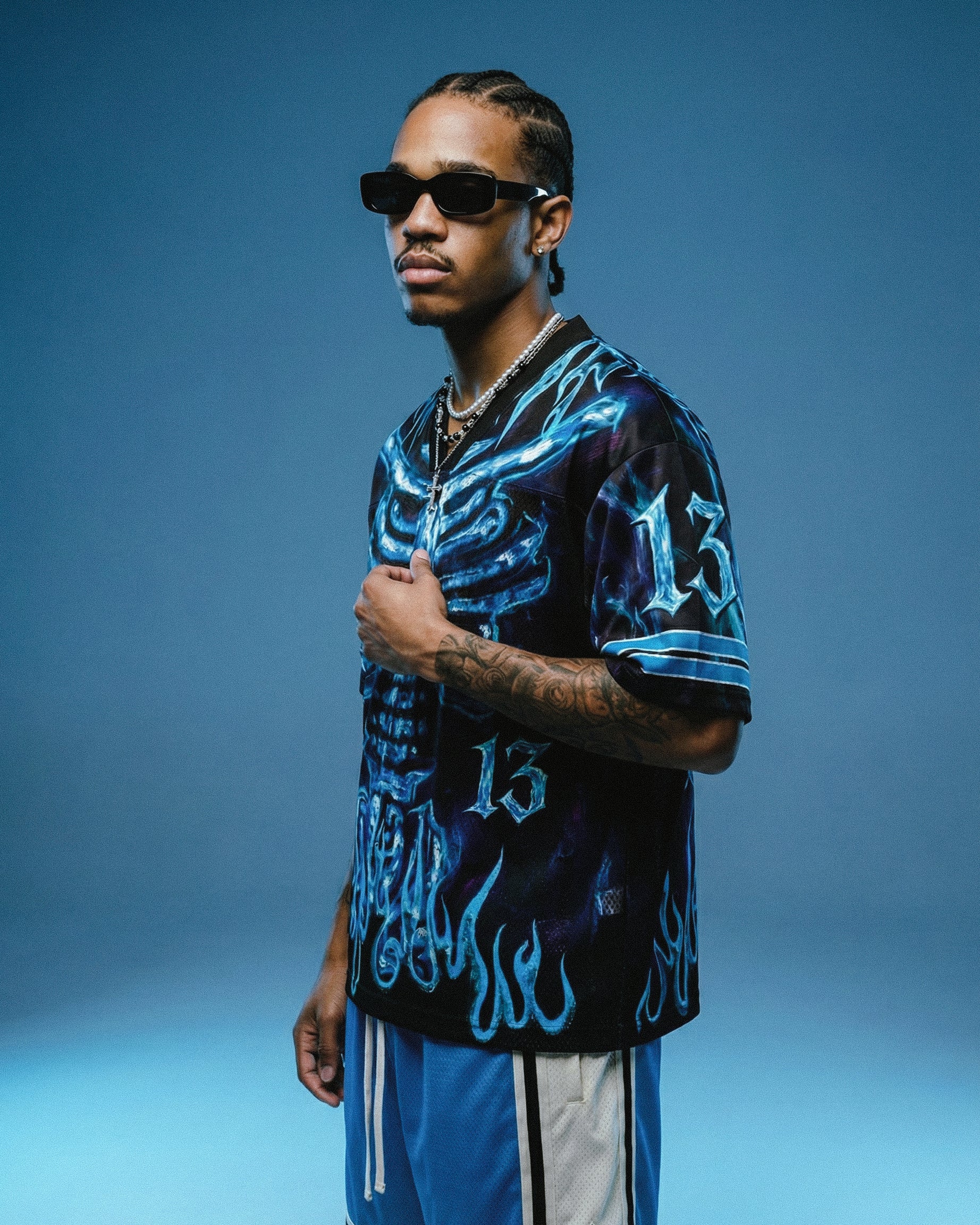 With its sporty mesh jersey style and vivid electric colors, this piece combines alternative art, skull imagery, and underground attitude into one powerful look.