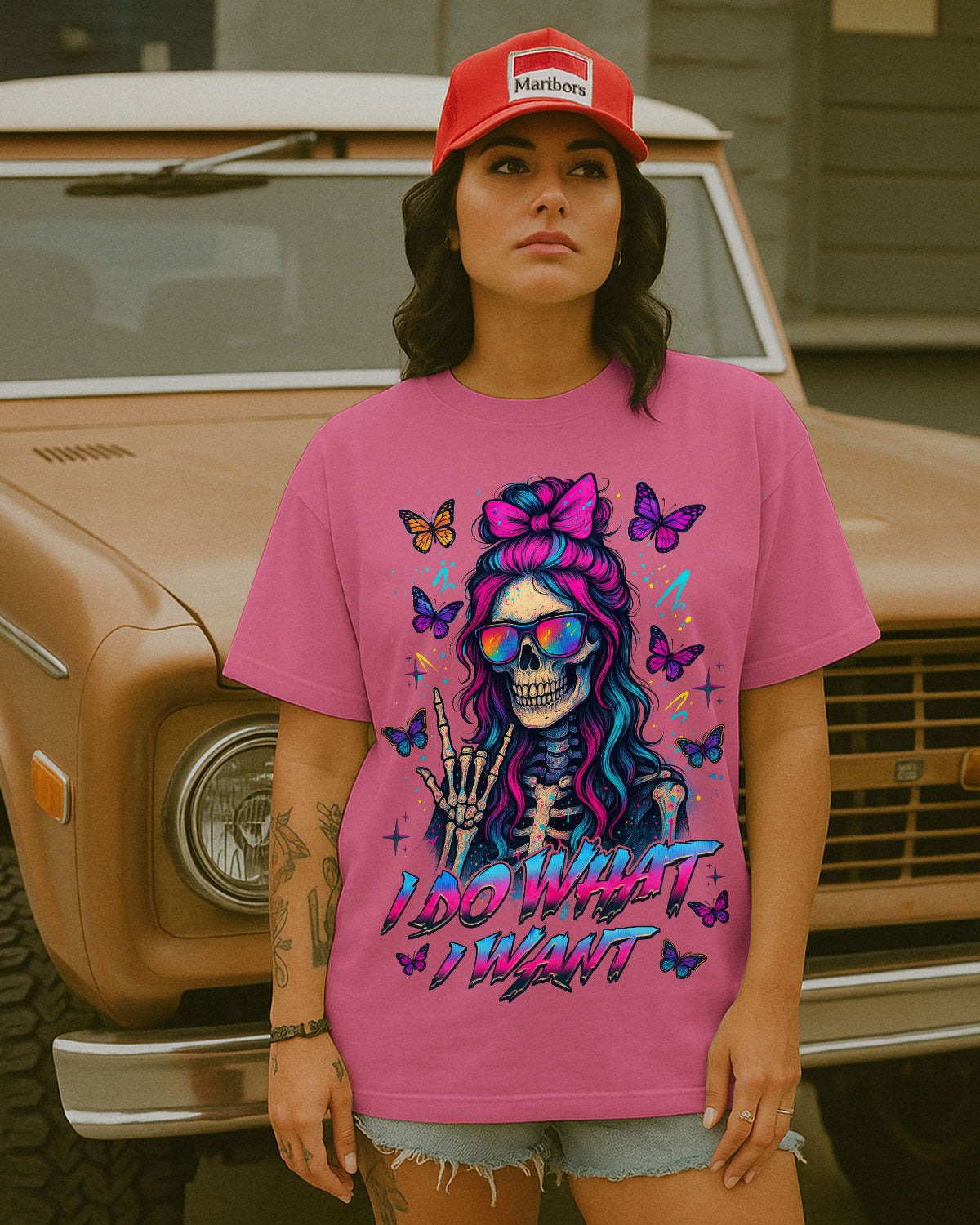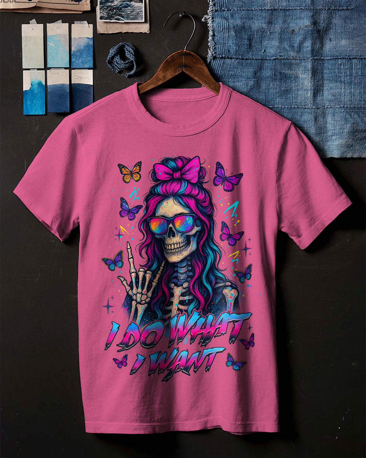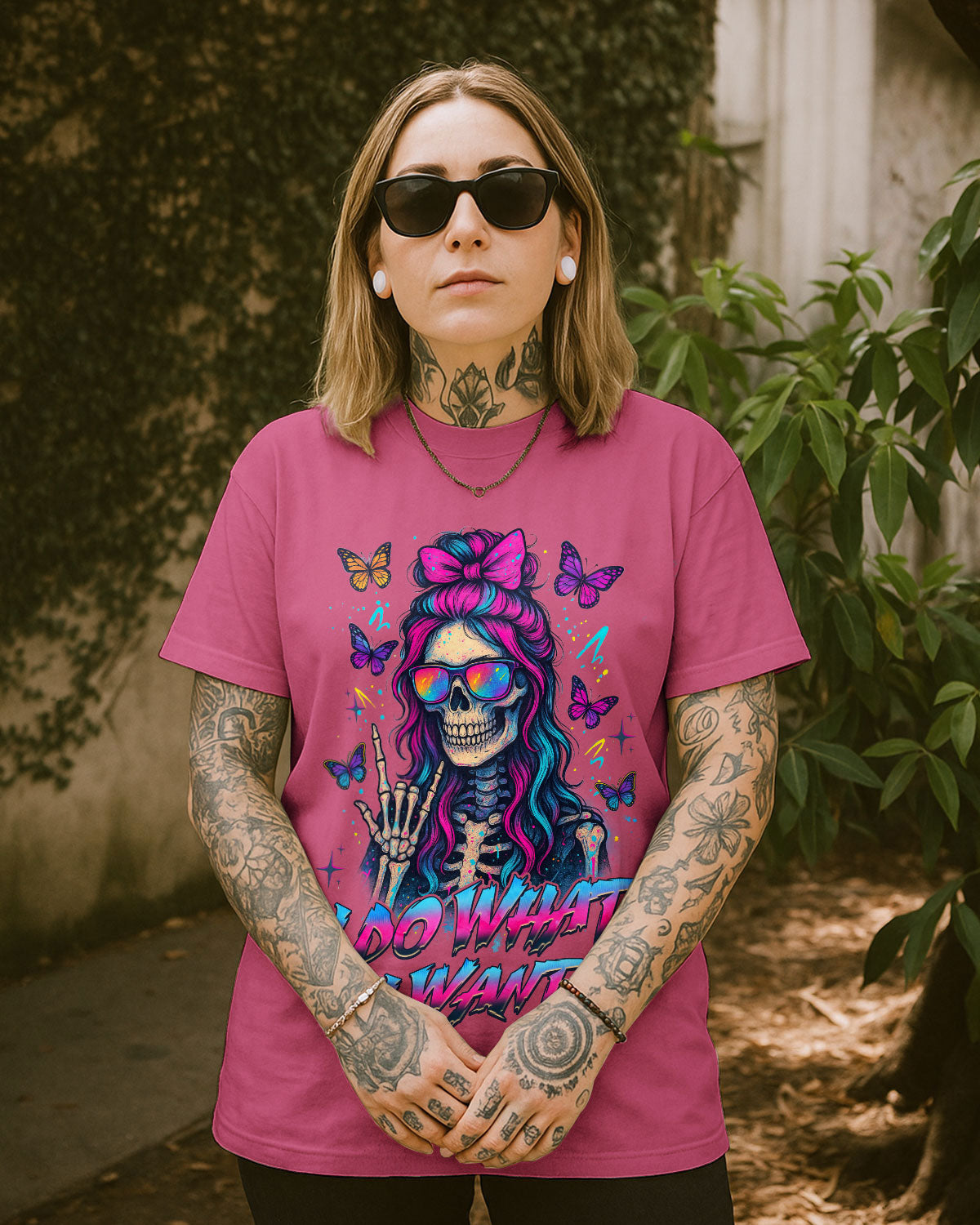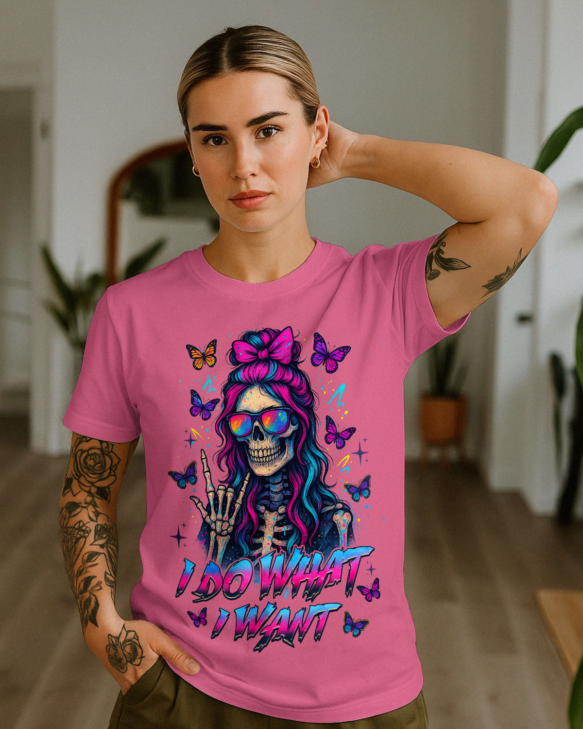 I Do What I Want Skull Messy Bun Comfort Tee