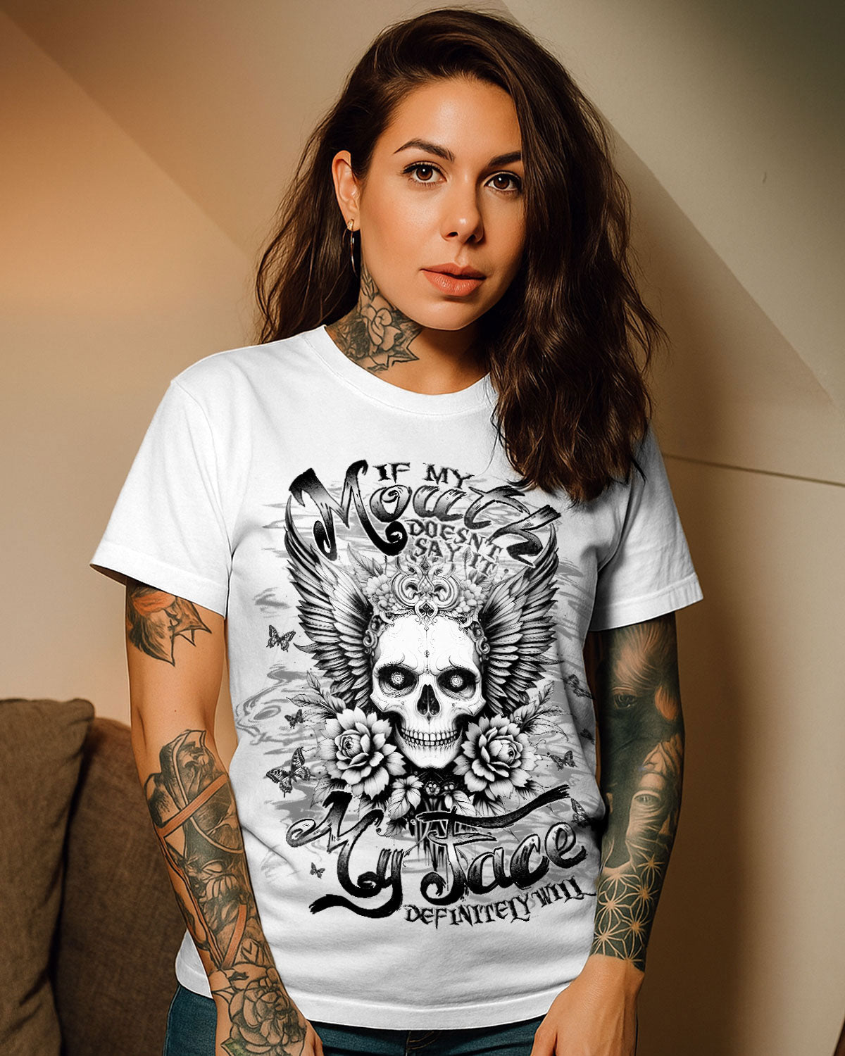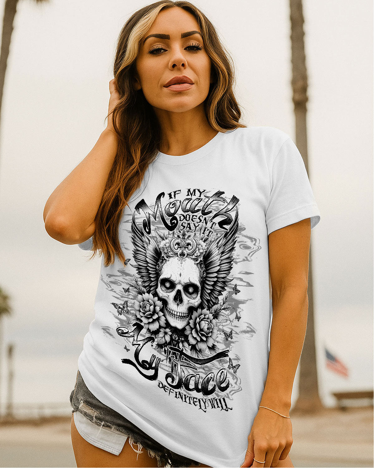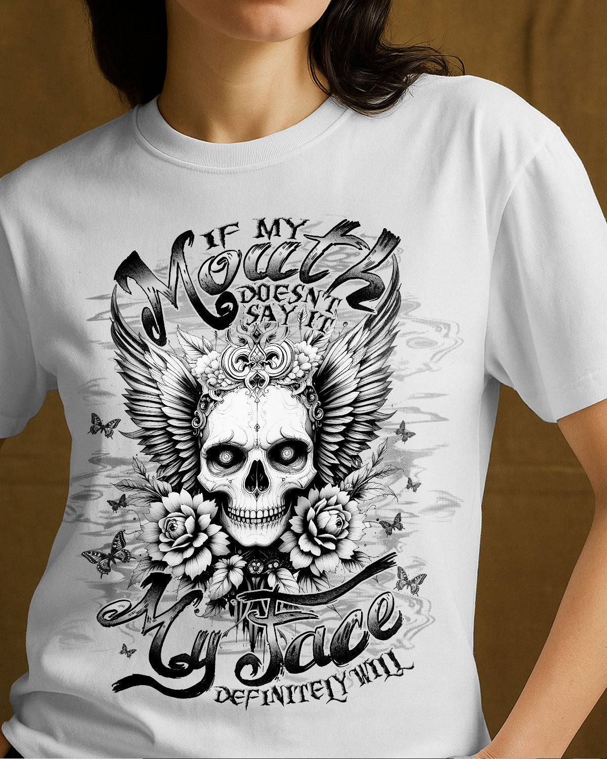 ๐Ÿ’€ If my mouth doesn't say it, my face definitely will ๐Ÿ’€๐Ÿ˜  A skull with ghostly wings and drifting spectral flowers fixes you with an intense, wordless glare. This striking imagery embodies the idea that sometimes your unspoken expression reveals more than any argument ever...