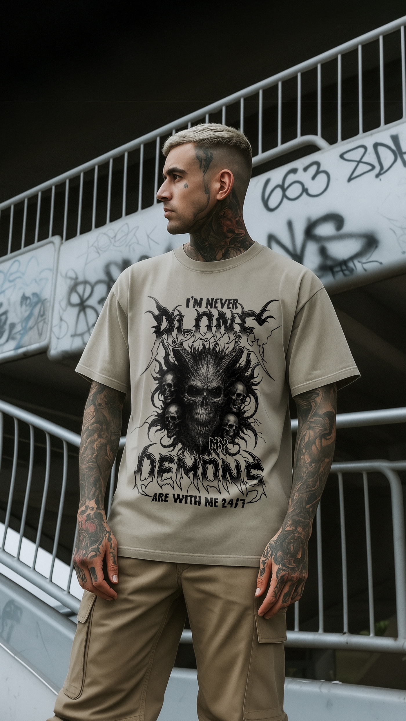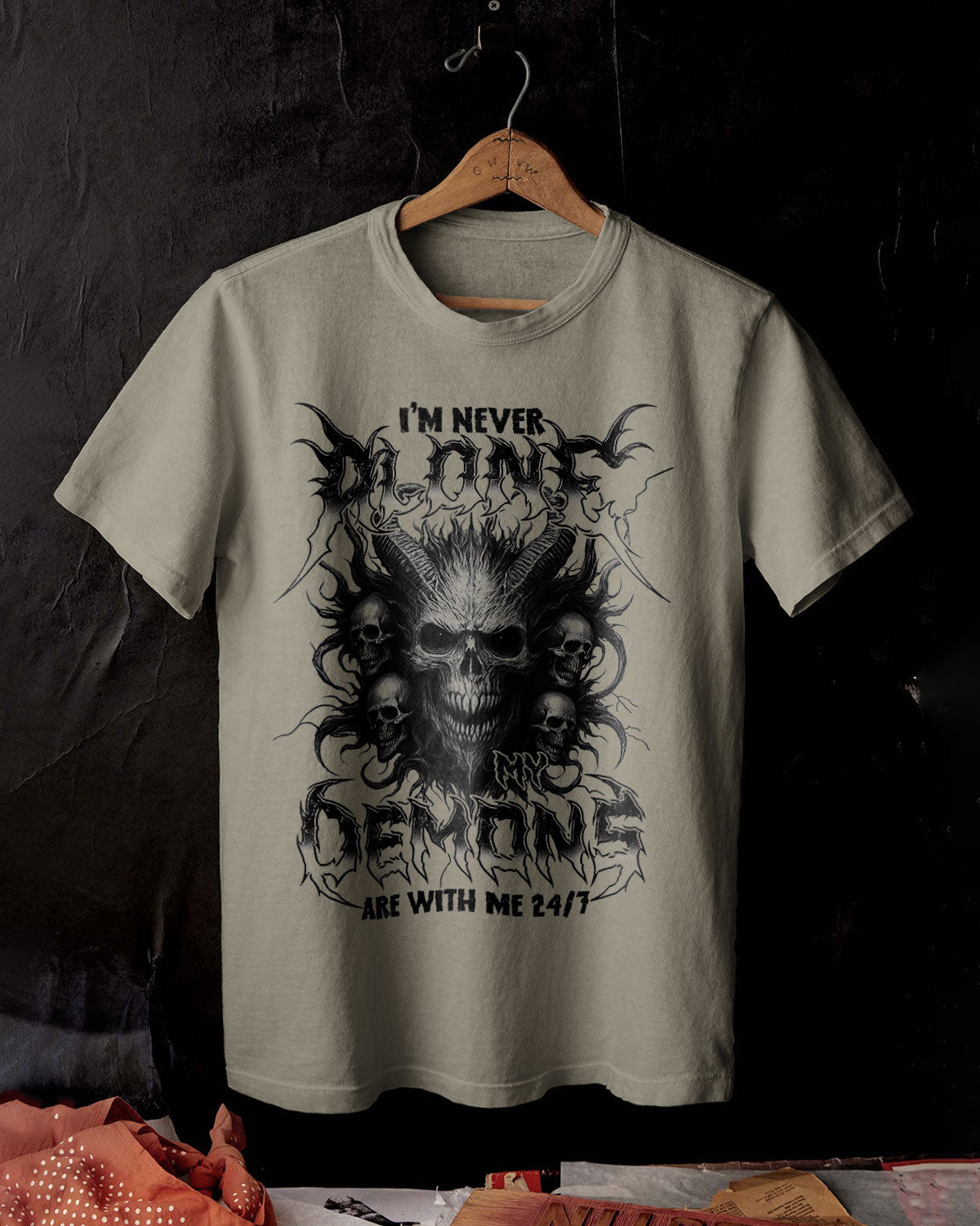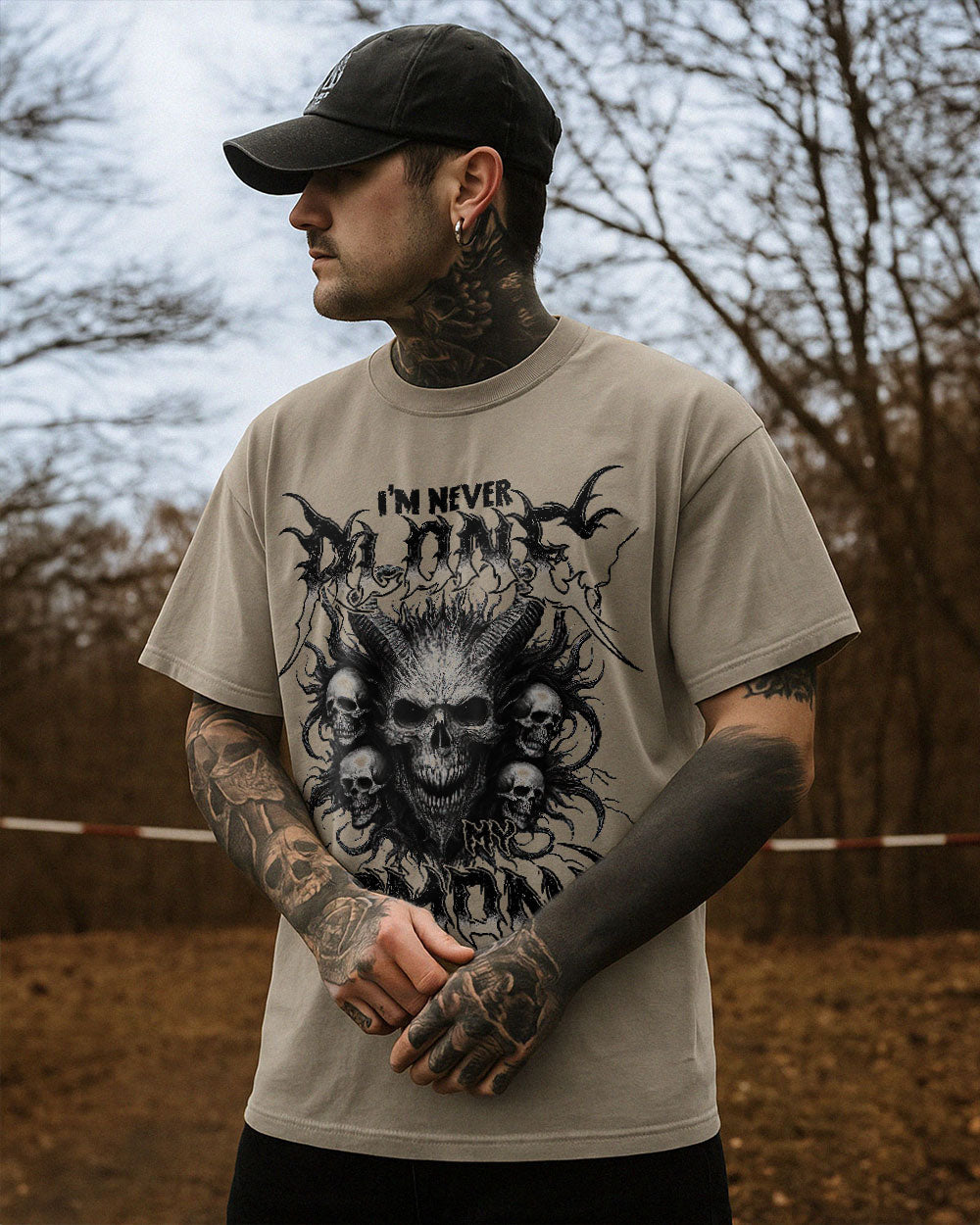 Make a bold statement with the I'm Never Alone Men's Comfort Tee. This tee features a burning skull surrounded by fire and thunder, representing survival and strength. Walk proud and fearless knowing you're never alone in the darkness. Comfortable and fierce, just like you. 💀 🔥 ⚡
