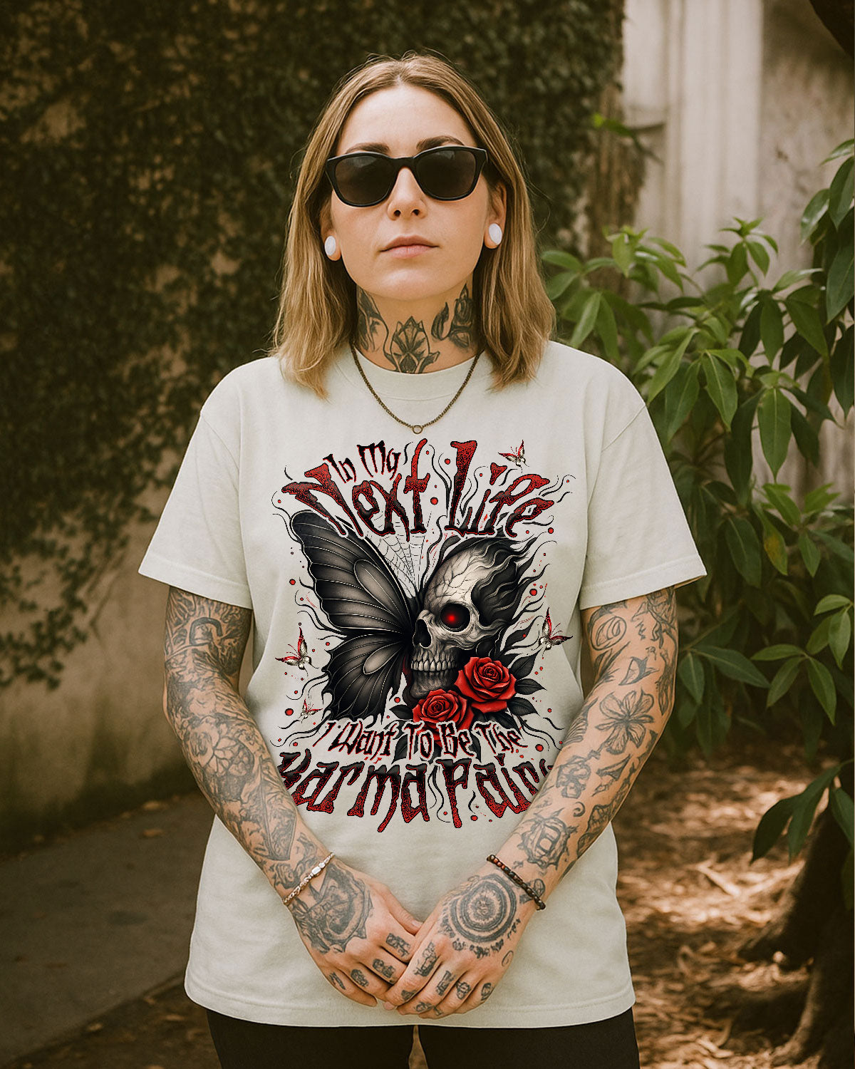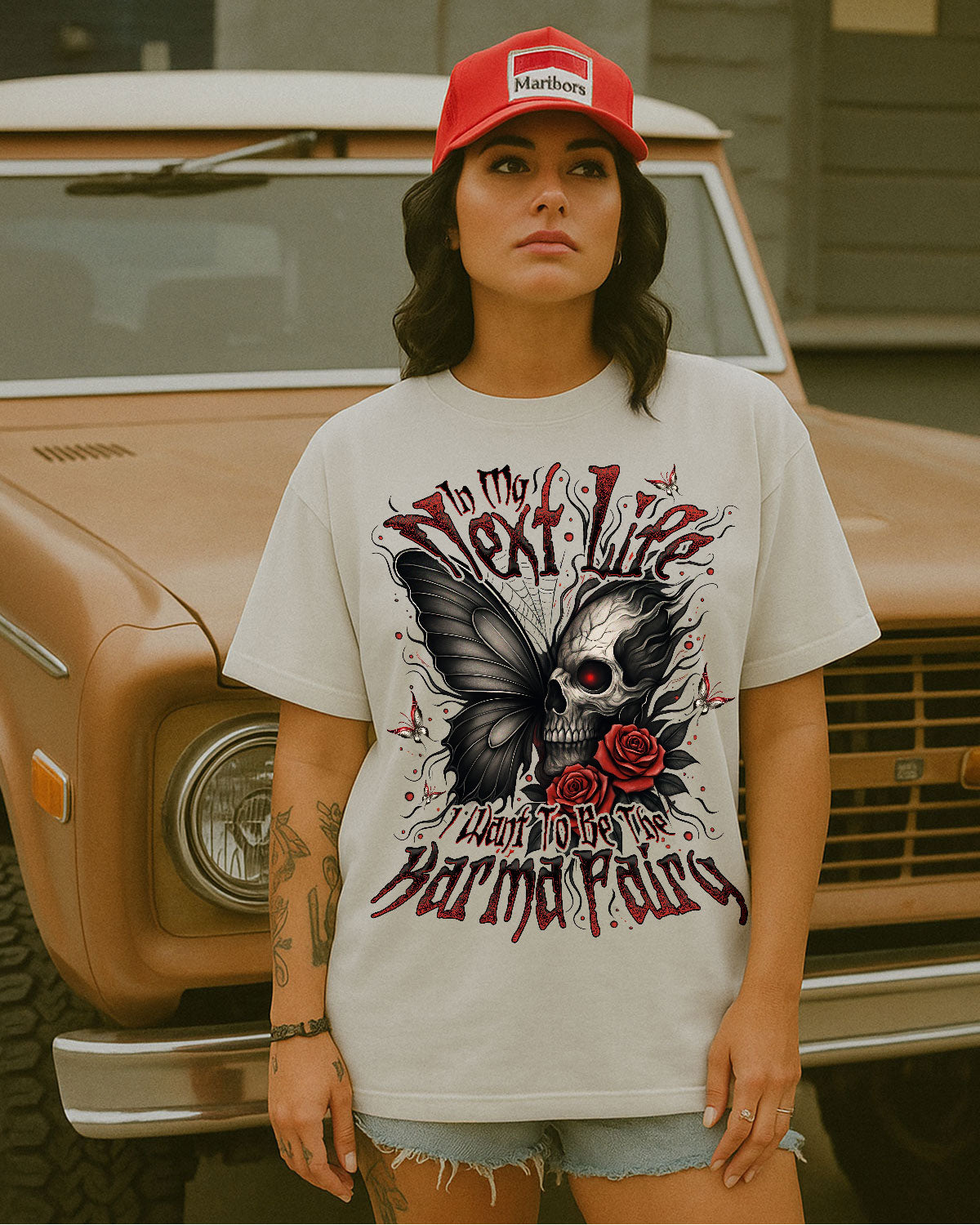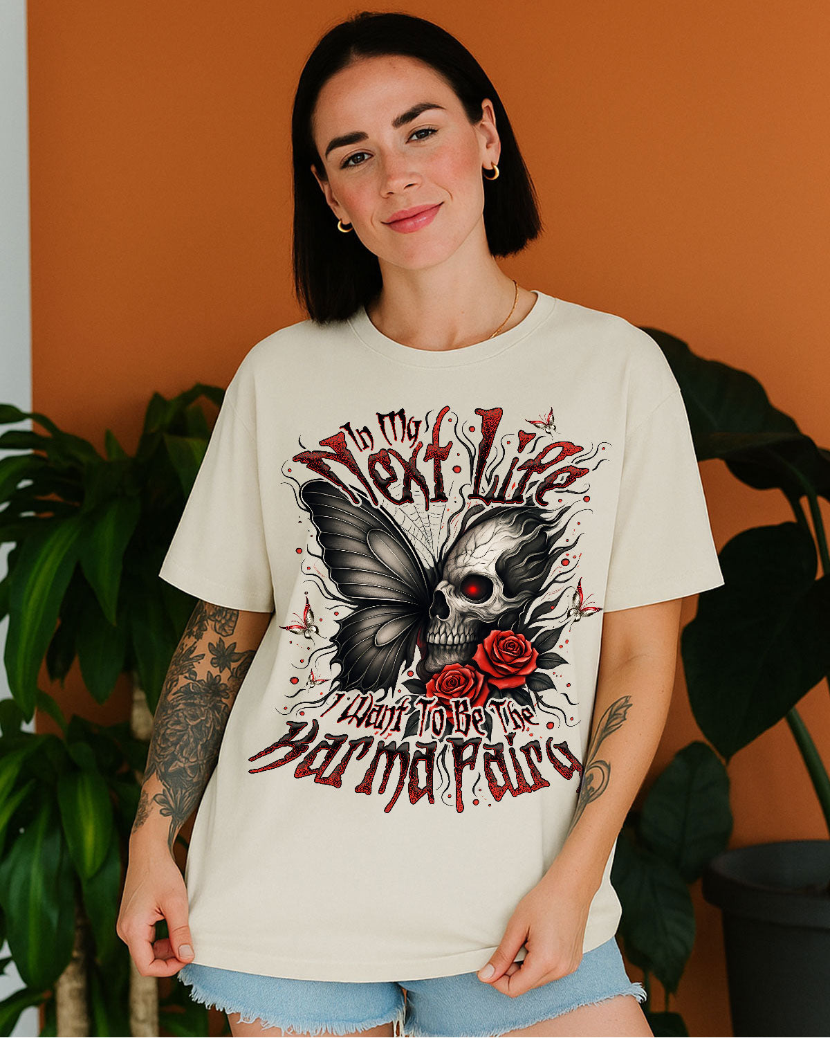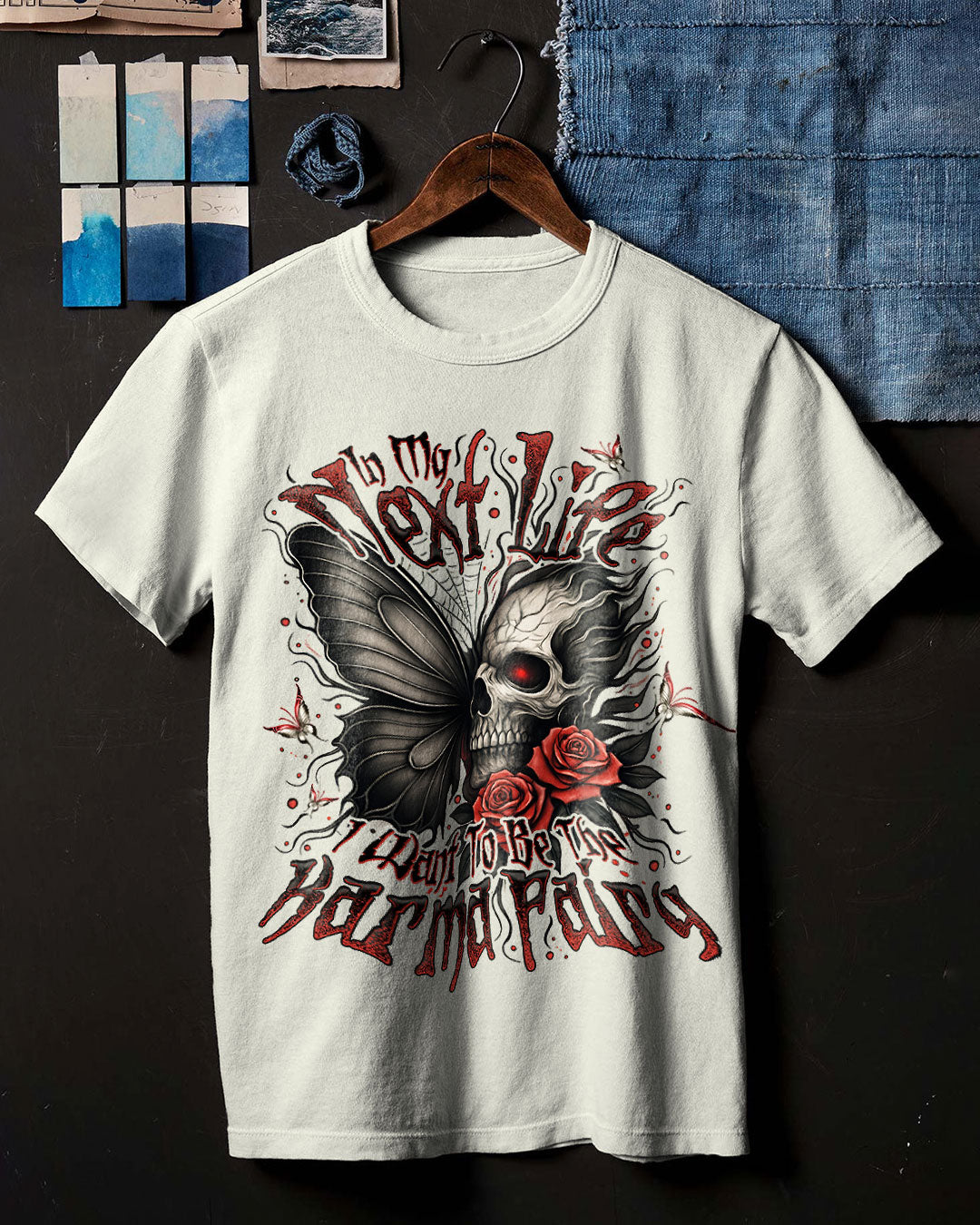 Delicate yet haunting butterfly skull imagery conjures an otherworldly aura of poetic justice. Intricate ghostly wings fused with skeletal motifs and fluttering butterflies capture the spirit of karmic balance. This saying playfully expresses a longing to administer fairness with a touch of mystical retribution. Sporting this design proclaims your belief that every deed returns to its source and those who err will face their fate.