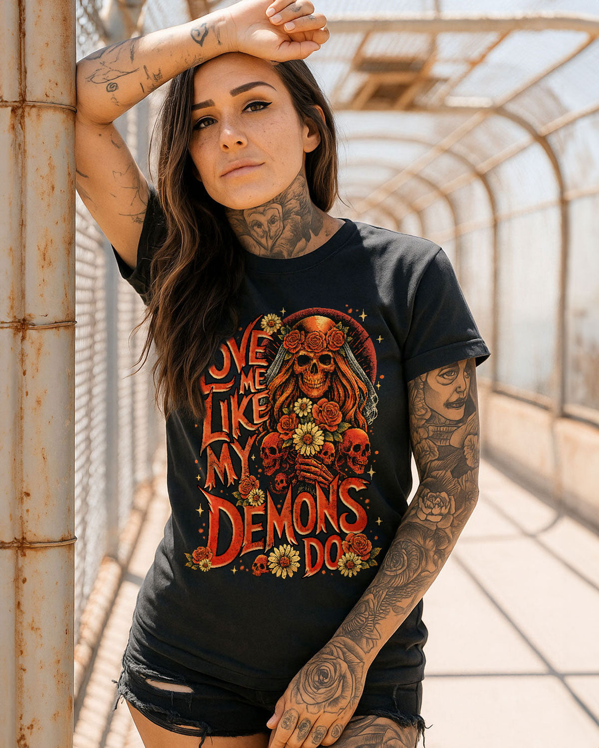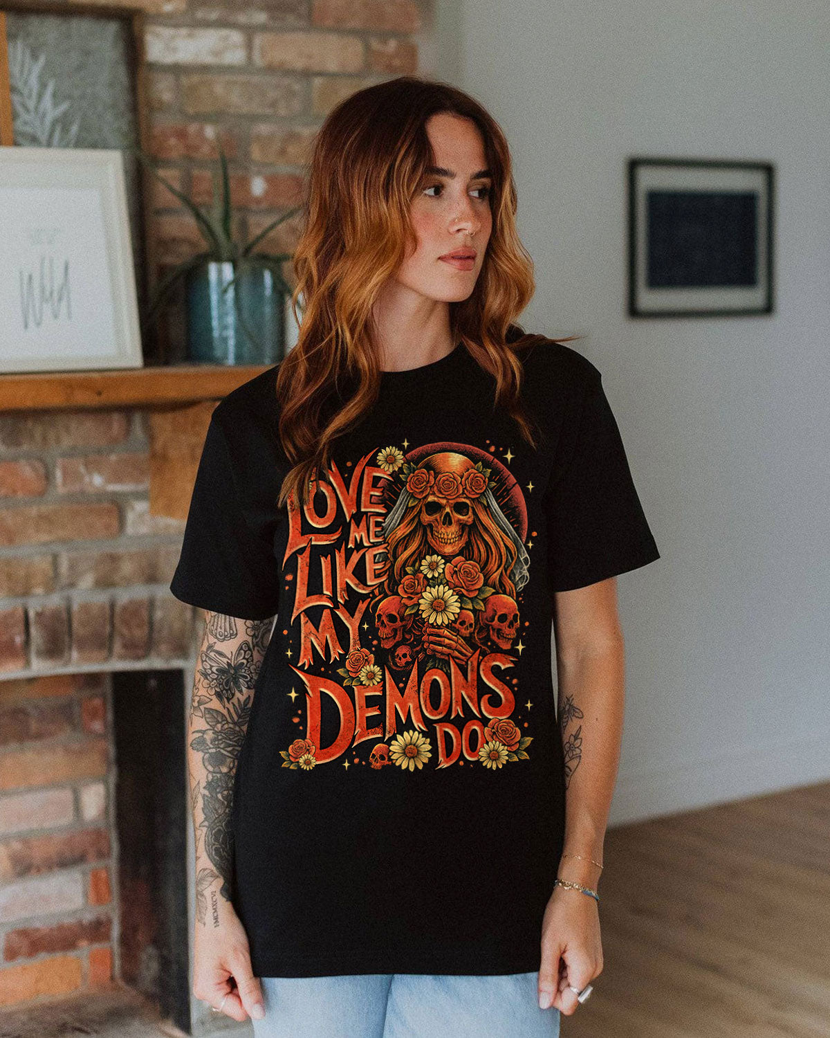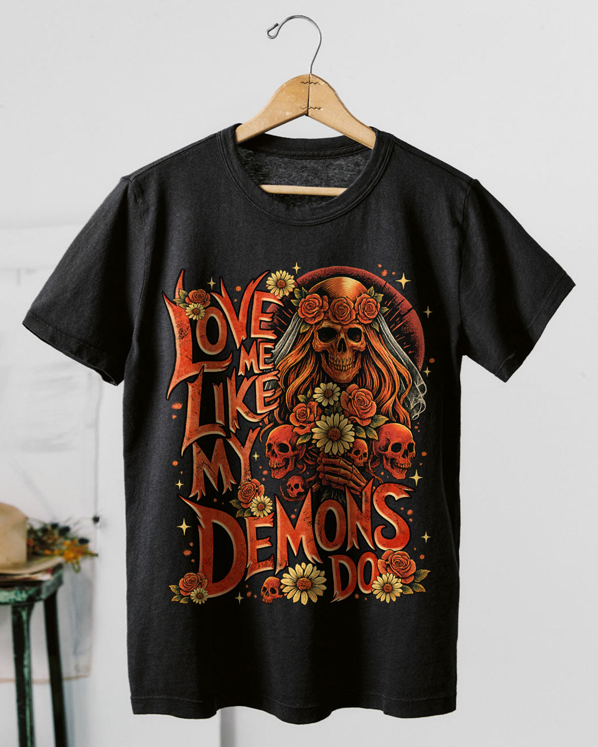 💀 Love Me Like My Demons Do 🌺🖤 Darkness can be beautiful, especially when it blooms with wild magic and unapologetic truth. Surrounded by bold, mystical flowers, this skull design celebrates the raw, untamed parts of you that deserve love too. It's for the souls...