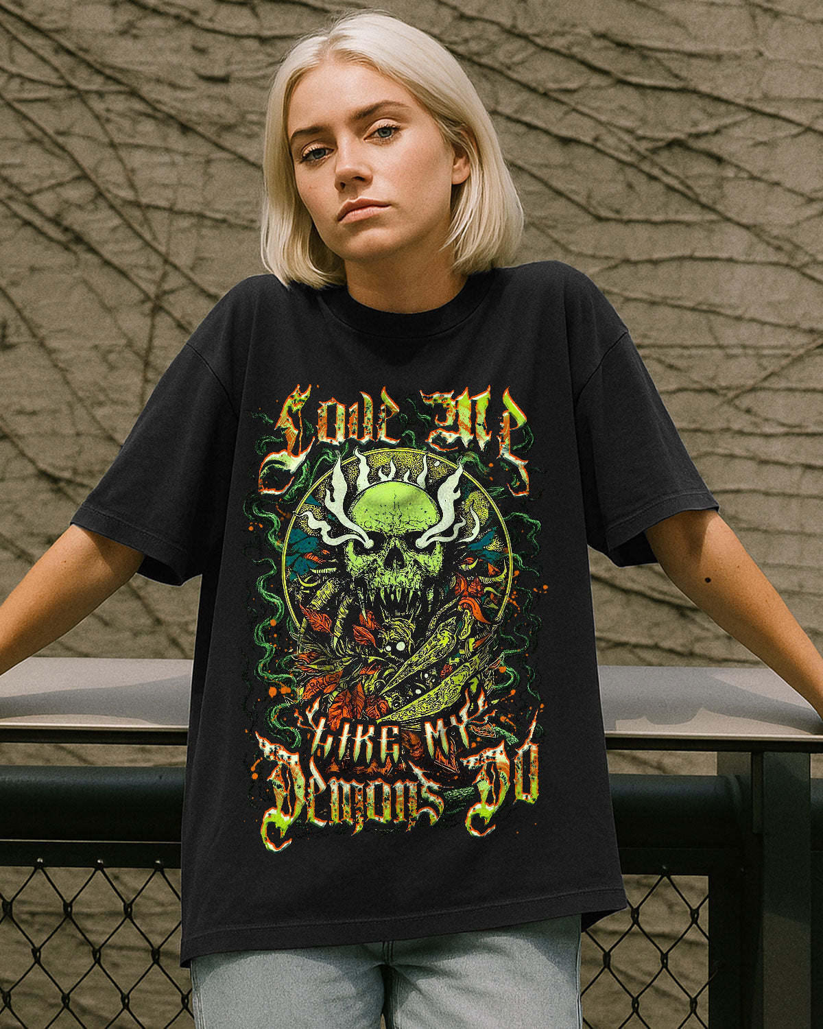 💀 Love Me Like My Demons Do ⚡😈 A haunting and chaotic design featuring a fearsome demon skull, crafted with dark, twisted artistry that radiates danger and intensity. This quote speaks to the kind of love that doesn’t run from darkness — it embraces every...