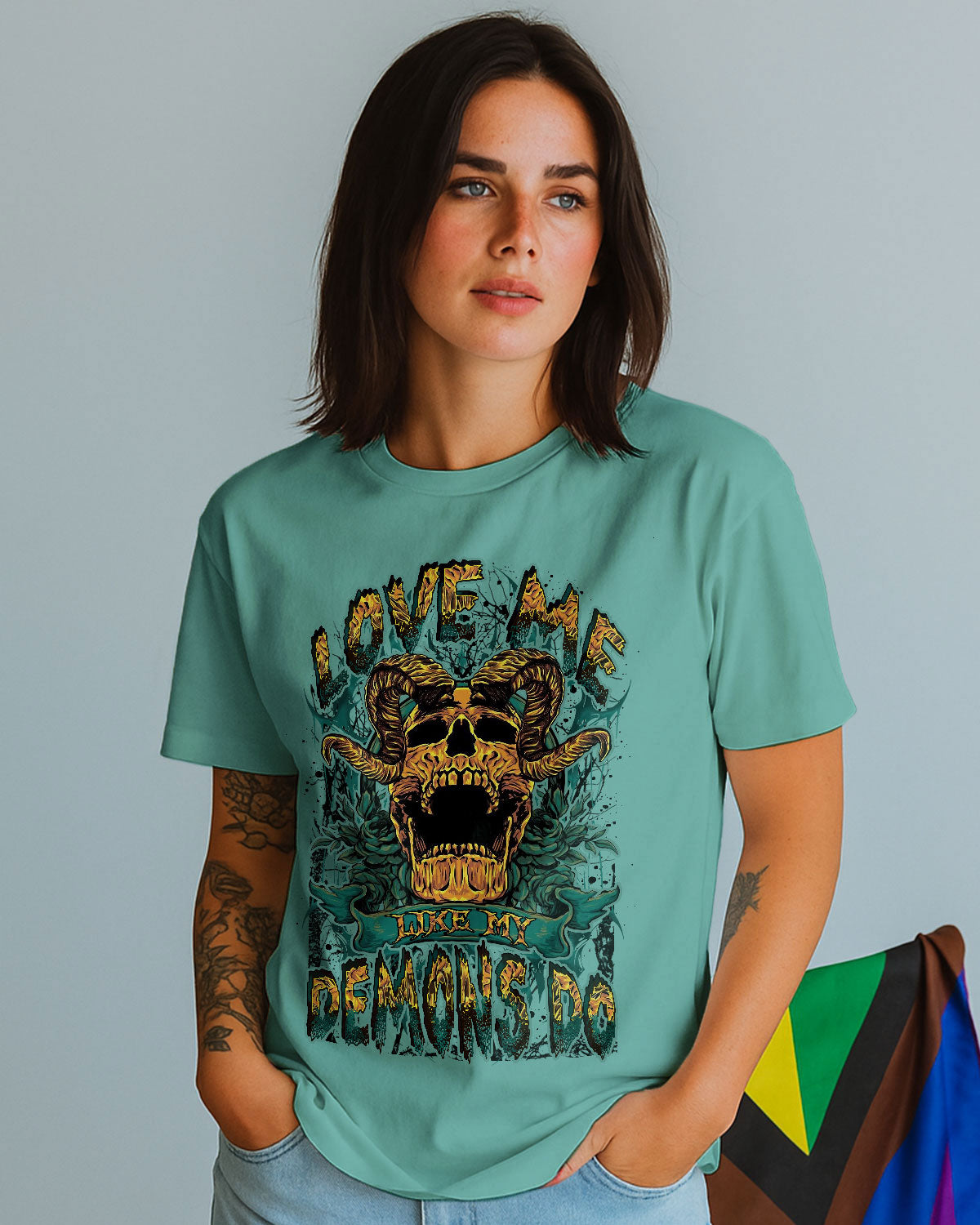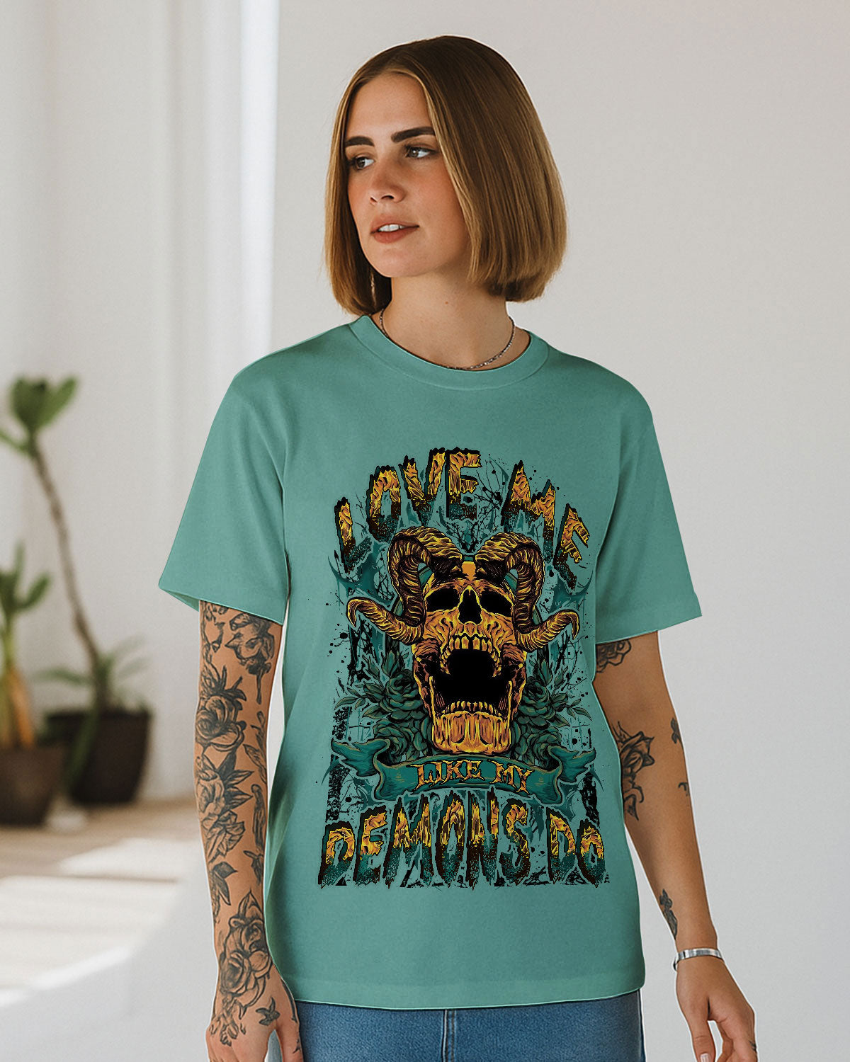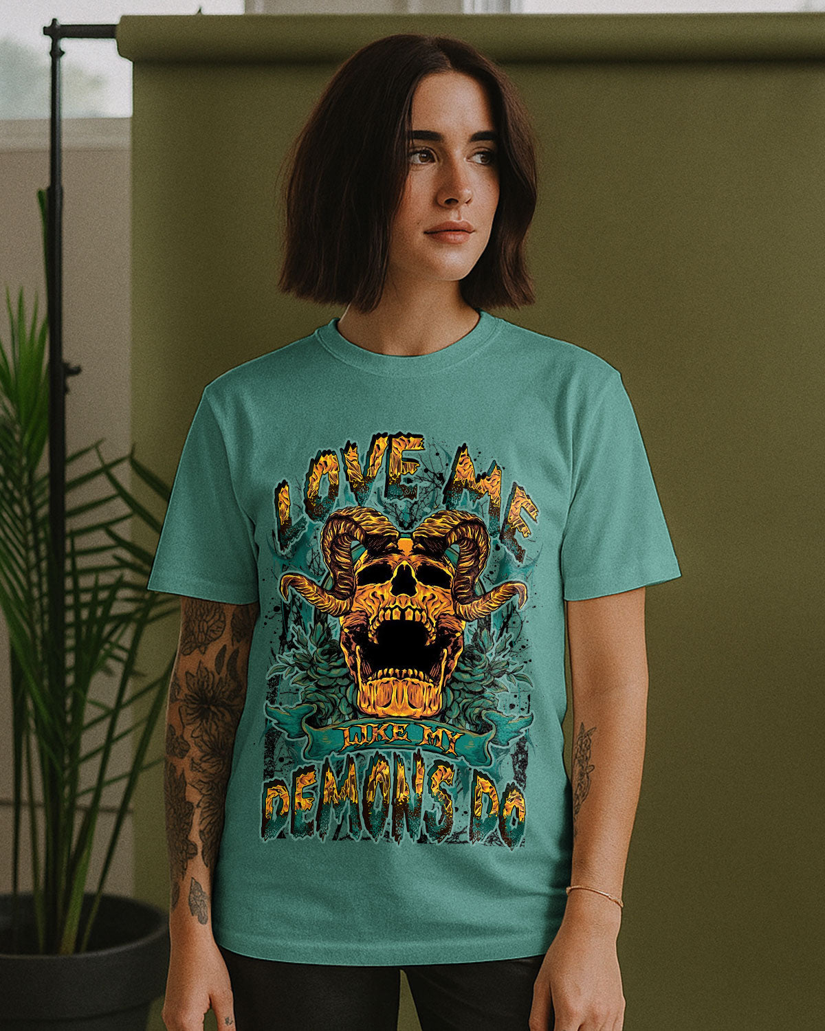 Dark, raw, and unapologetically honest — this haunting design fuses a demonic skull with vintage floral details, revealing the beauty within chaos. It's a powerful message for those who crave a love that's wild, unfiltered, and fiercely loyal. Because sometimes, the darkest parts of us love the hardest.