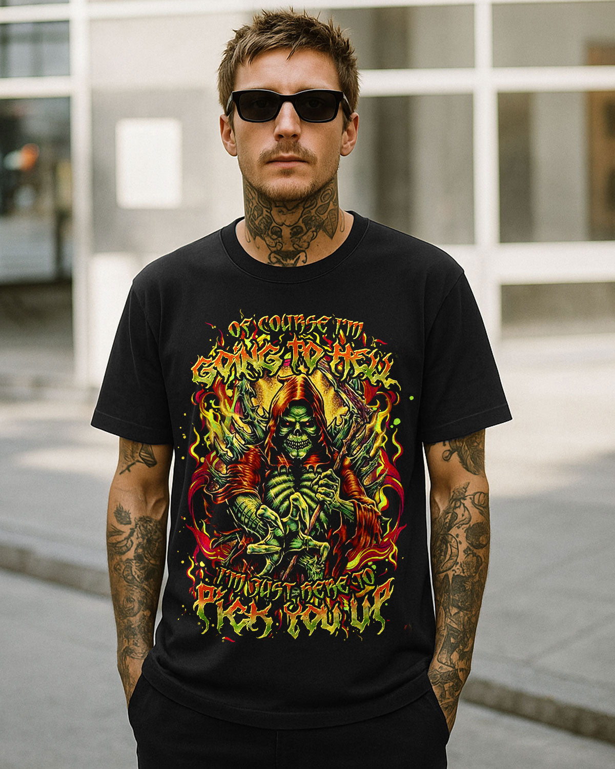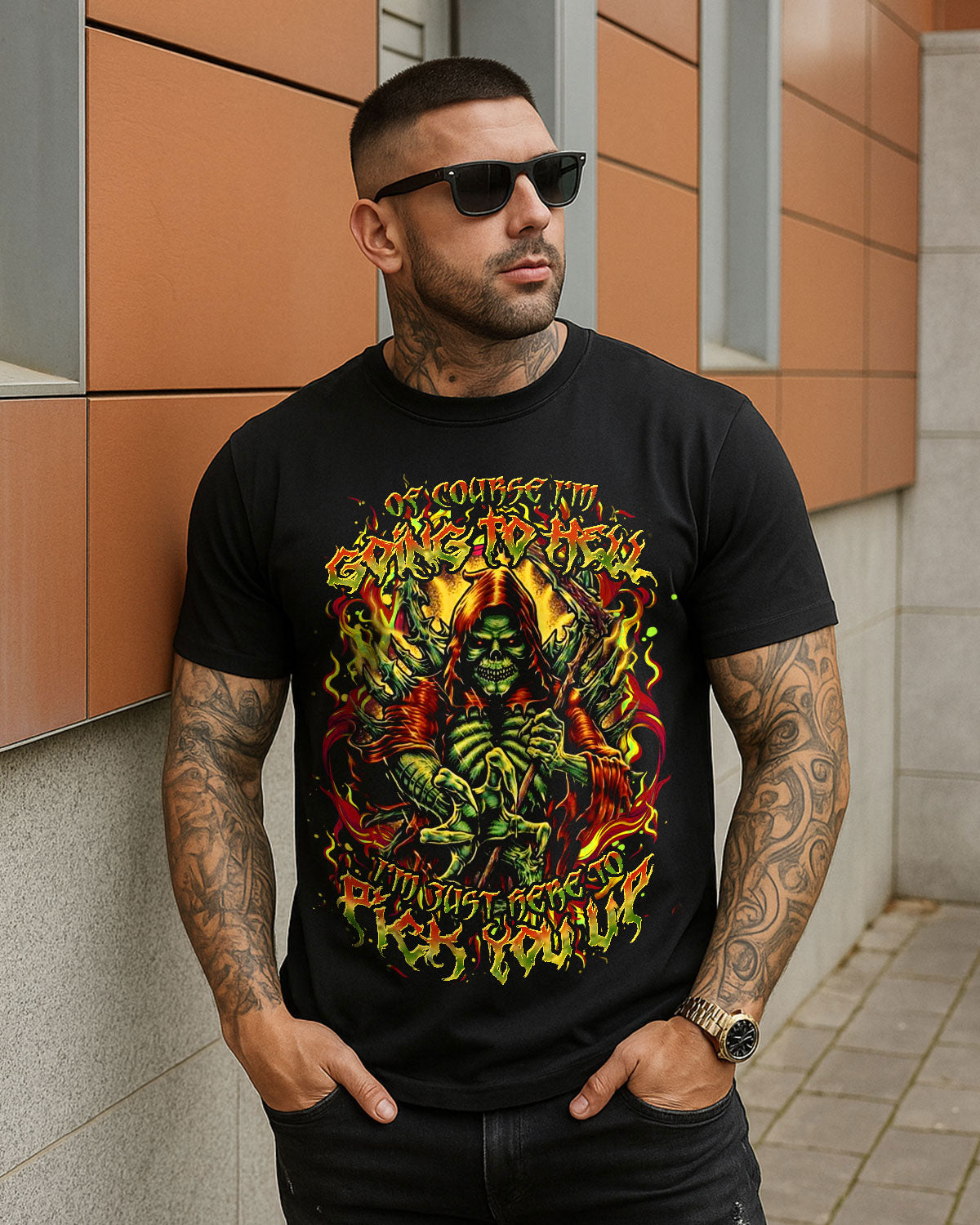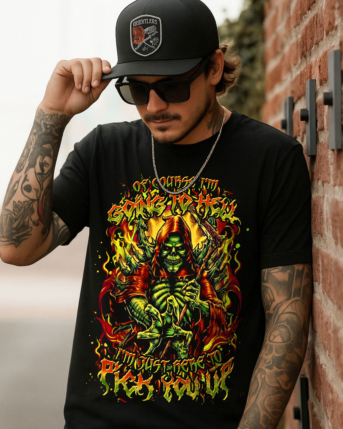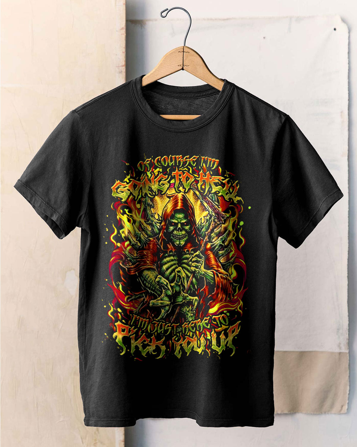 This bold and wickedly defiant design features a menacing skull reaper engulfed in hellfire, gripping a razor-sharp scythe with a deadly smirk. It’s not just a threat — it’s a promise of loyalty with a dark twist. For those who embrace chaos with style and would drag their favorite sinner into the flames with them. Sinister, loyal, unforgettable.