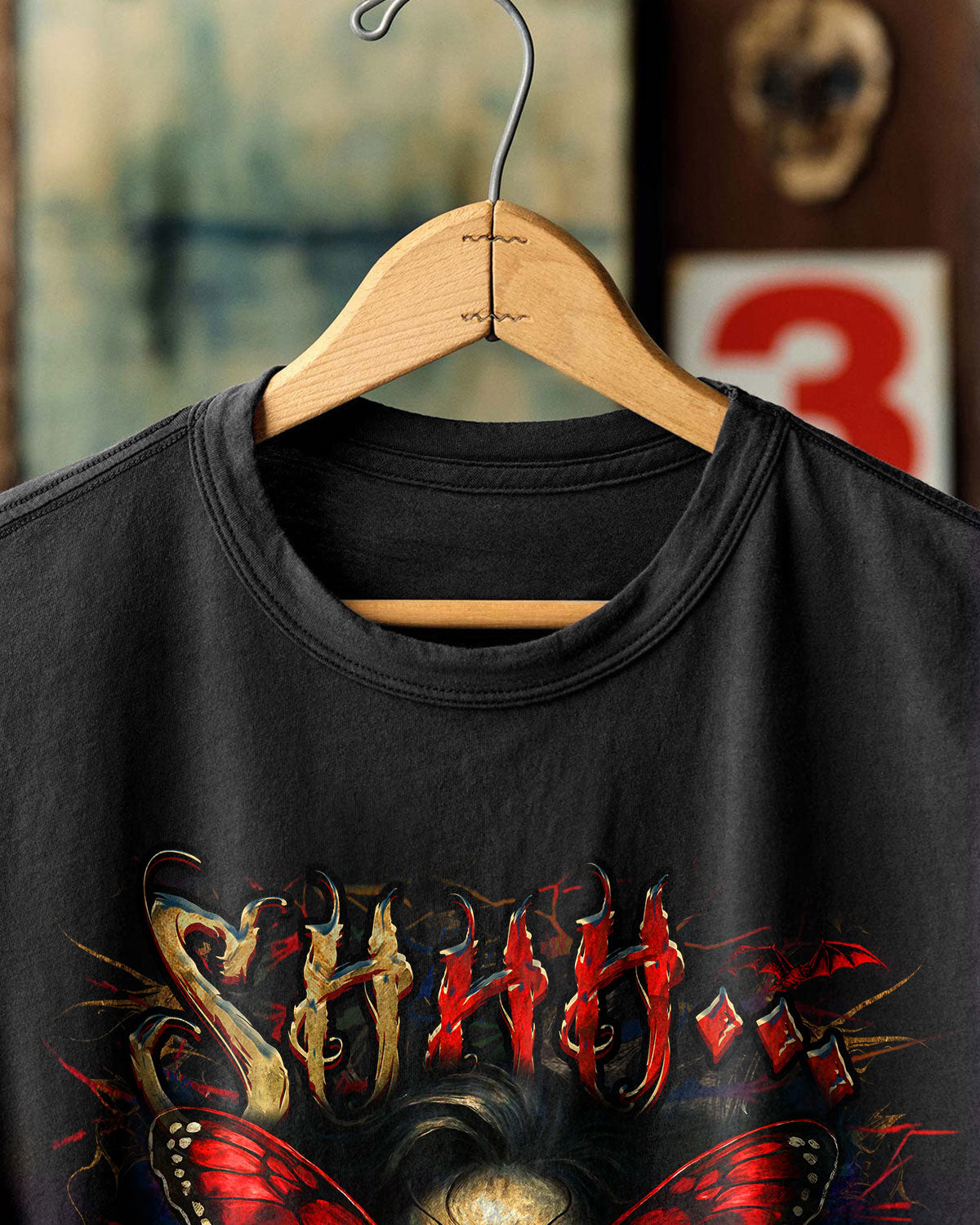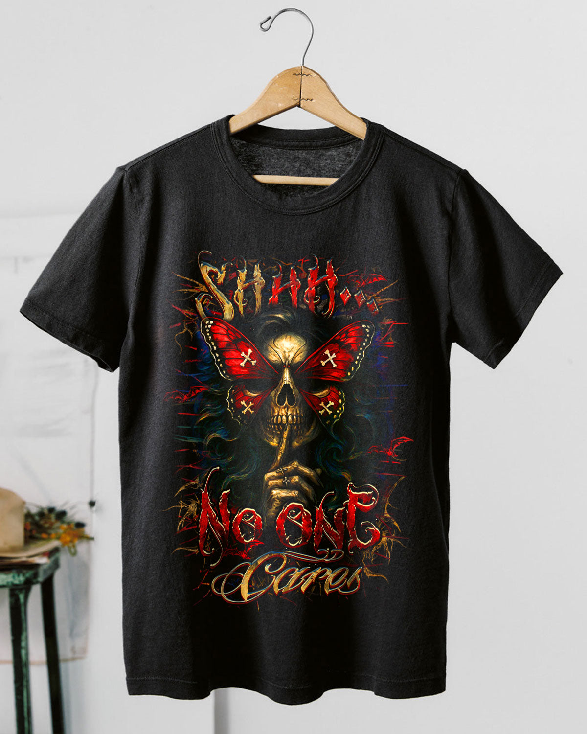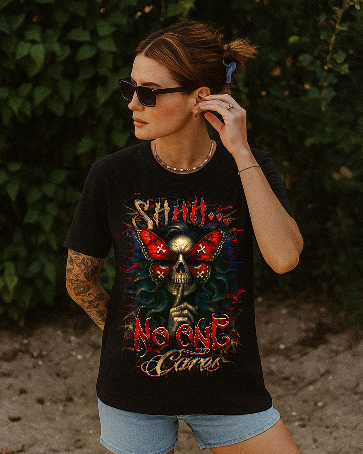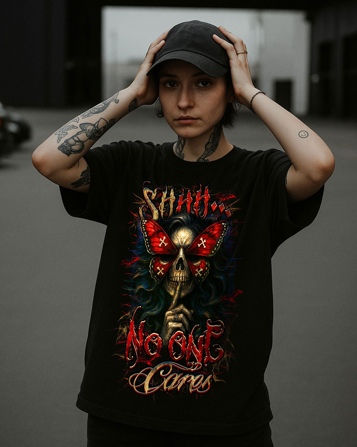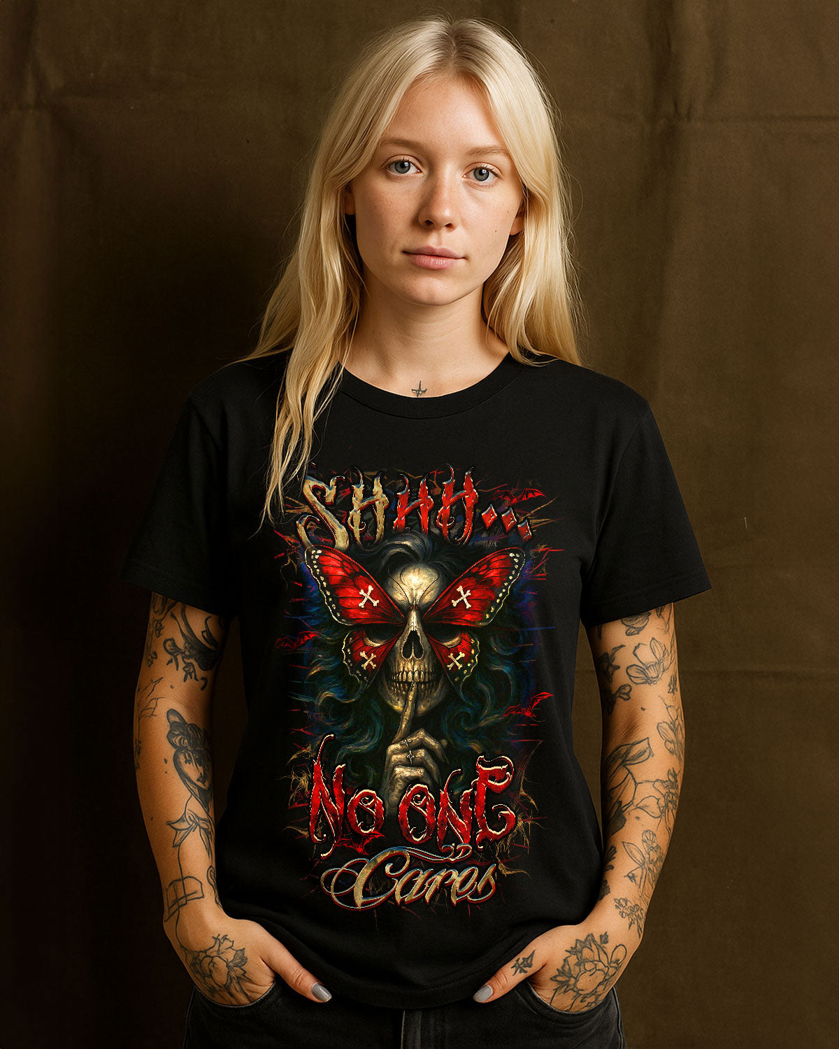 Shhh No One Cares Butterfly Skull Lady Comfort Tee