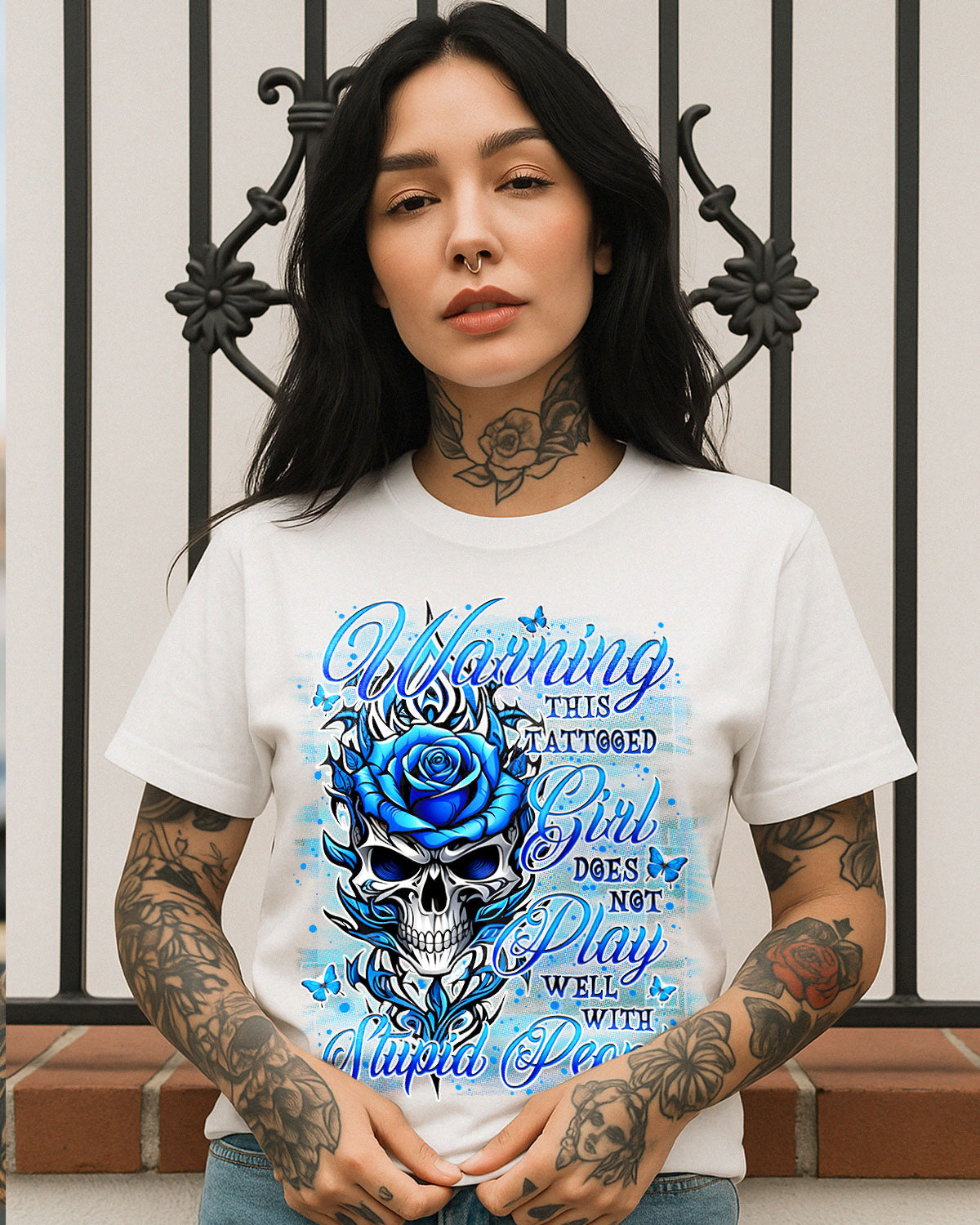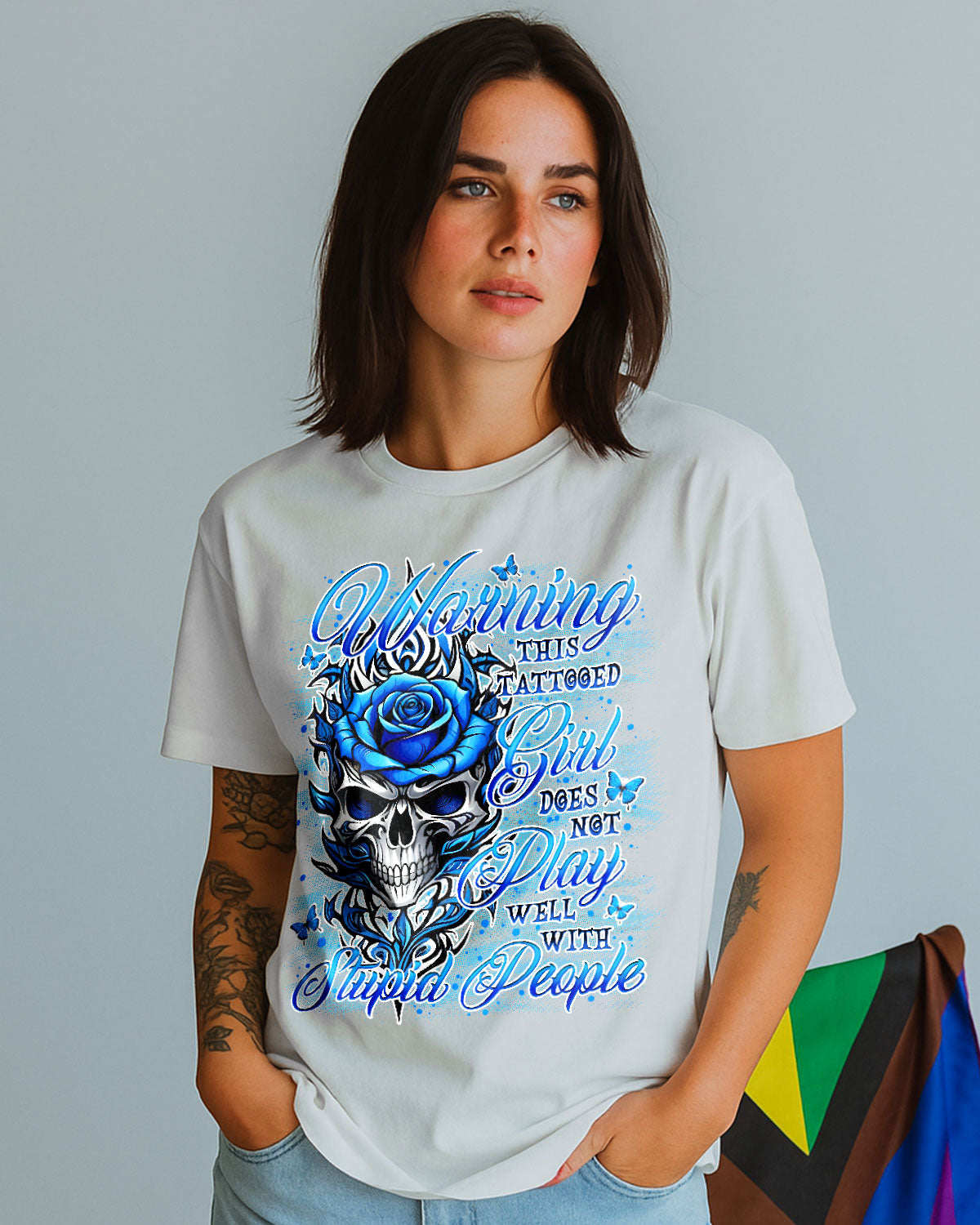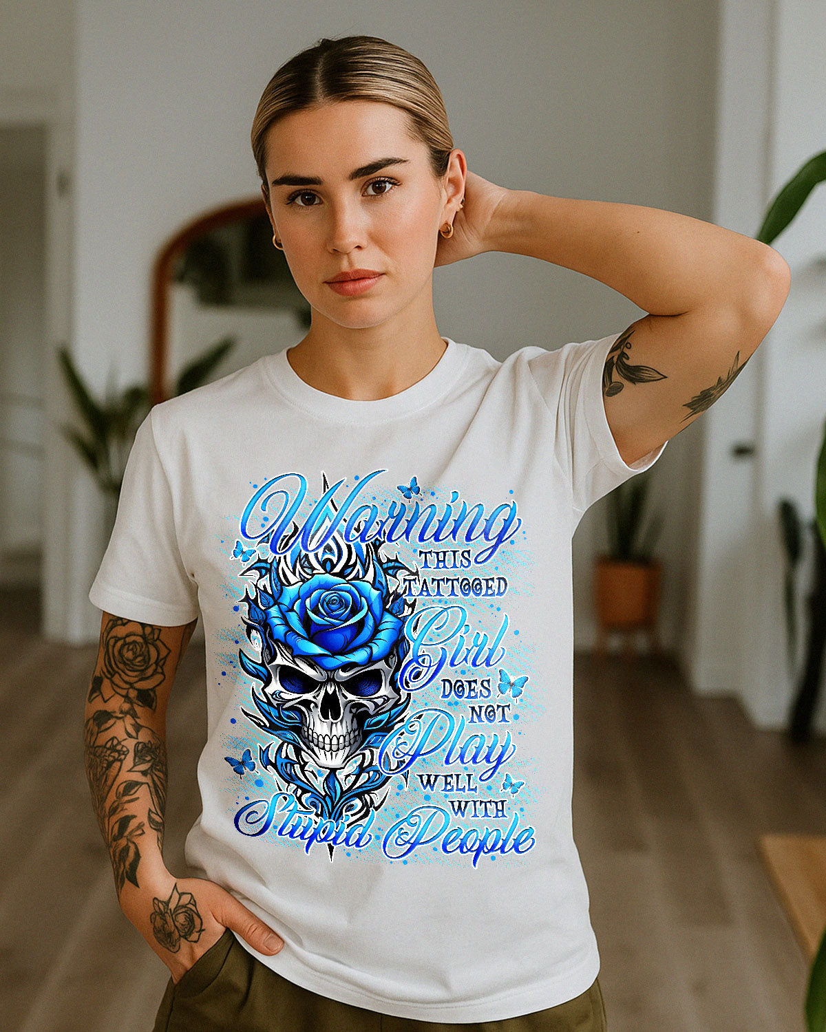 Warning This Tattooed Girl Rose Skull Comfort Tee