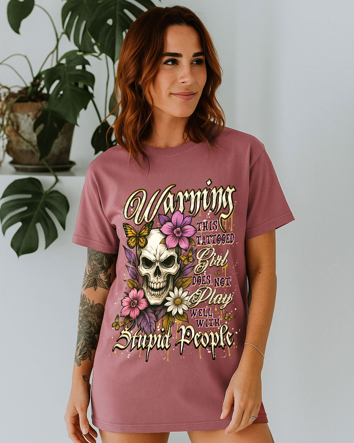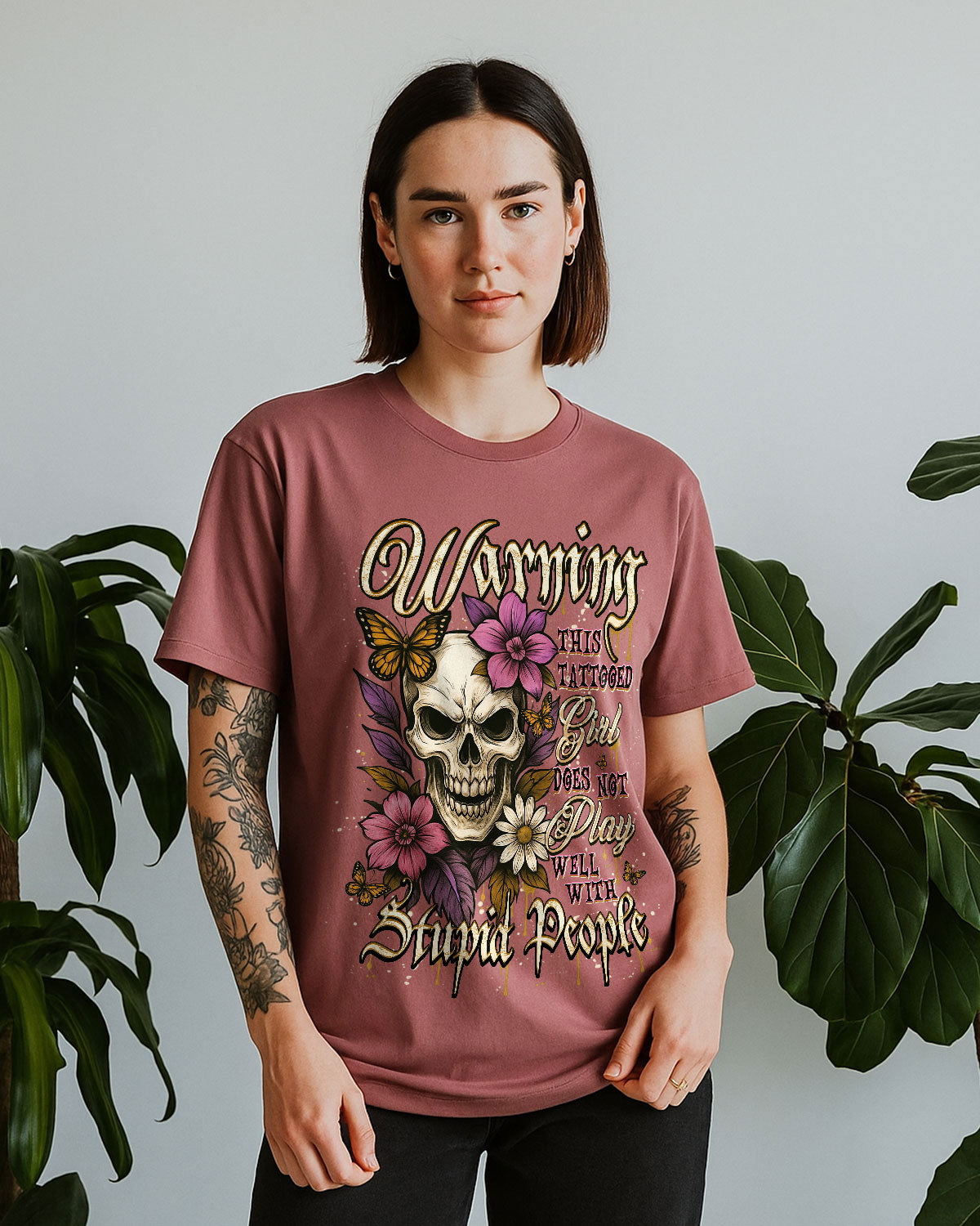 Bold, fierce, and unapologetically real—this design is made for the inked queens who don’t have time for nonsense. Featuring a striking skull adorned with blooming roses and fluttering butterflies, it’s a powerful blend of beauty and danger. A perfect statement for women who wear their attitude like they wear their ink—with pride.