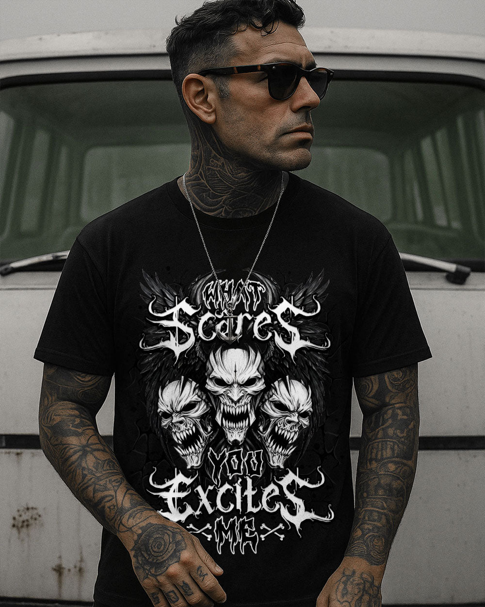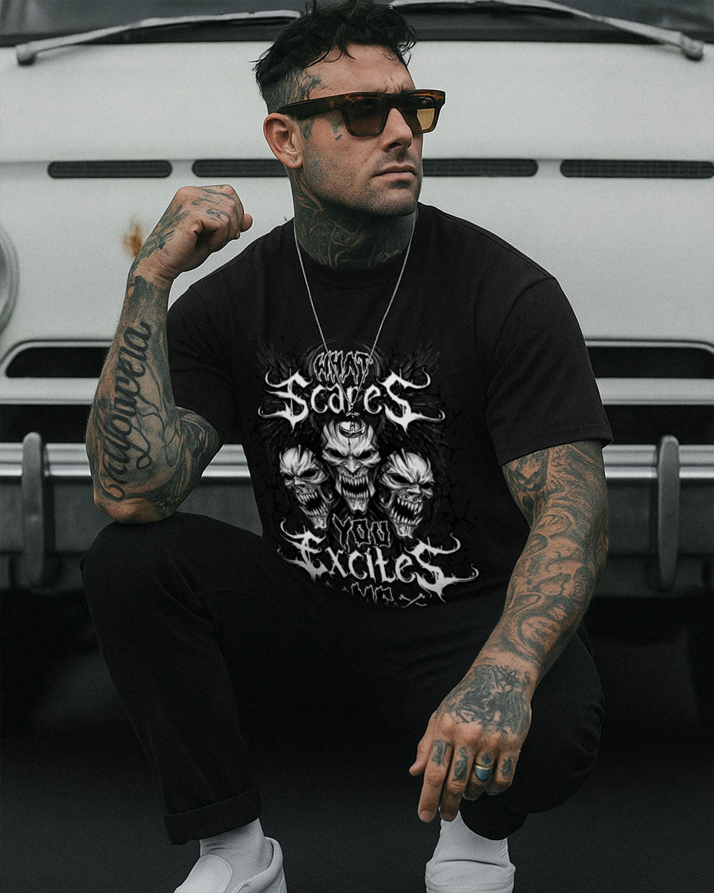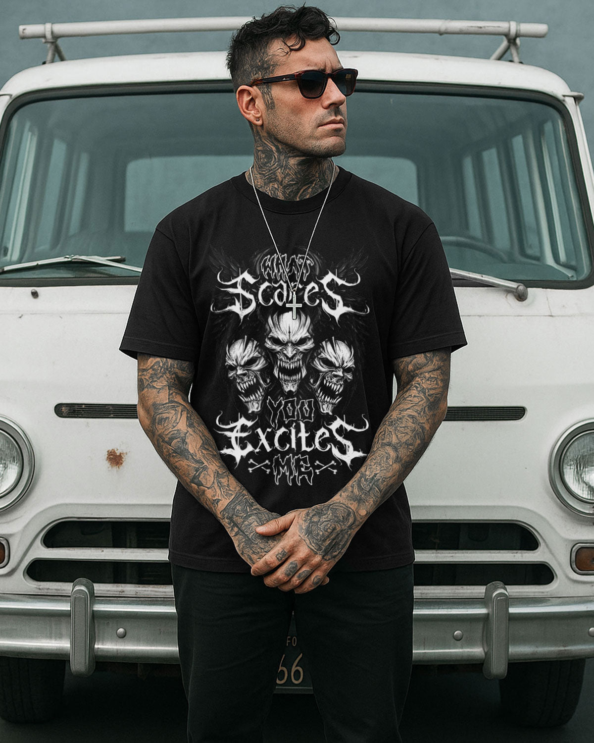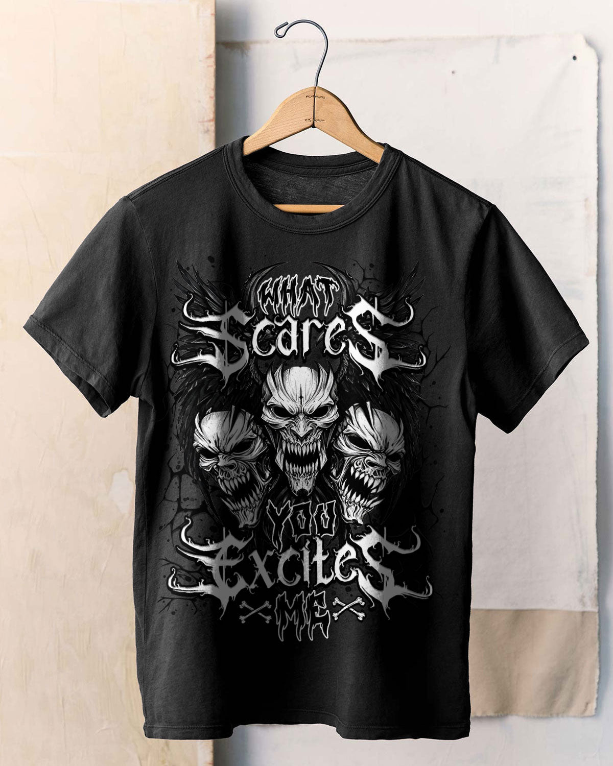 Our design unleashes three skull demons with outstretched black wings and feral grins, reveling in the art of terror. The phrase embodies the electric rush of drawing strength from every flicker of fear you ignite in others. It’s a dark celebration that transforms intimidation into euphoria and fuels your relentless power. Each menacing wingtip and blazing eye beckons you to flaunt your sinister joy and dominate the shadows.