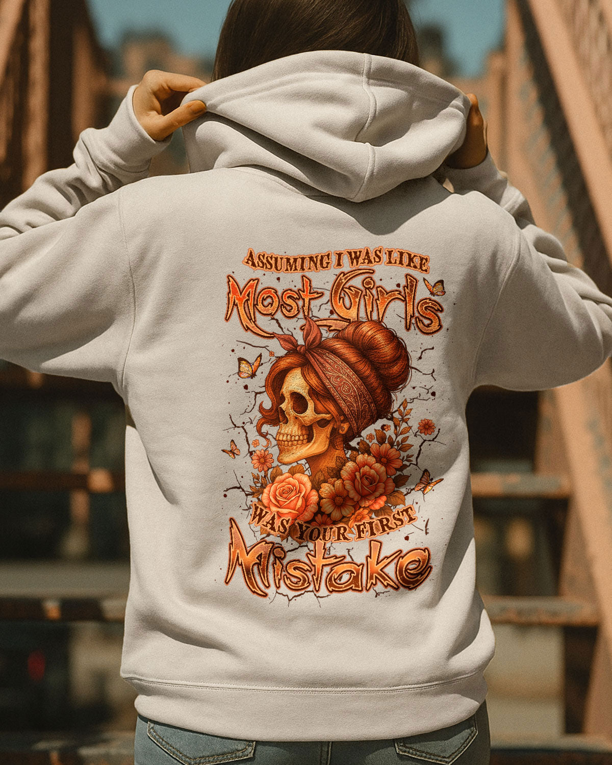 💀 Assuming I Was Like Most Girls Was Your First Mistake 🌸🦋 This isn’t just a quote — it’s a warning wrapped in confidence. The skull lady, fierce and fashion-forward, radiates unapologetic individuality. Surrounded by blooming flowers, free butterflies, and thunder lines crackling with power,...